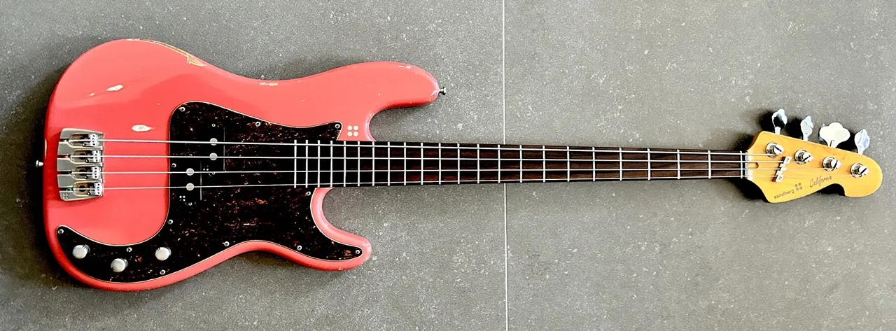 Verkaufe einen Sandberg California VS4 Active, 4-Saiter, Fiesta Red, Hard Core Aged, hergestellt im Jahr 2012.