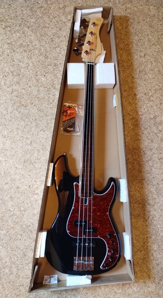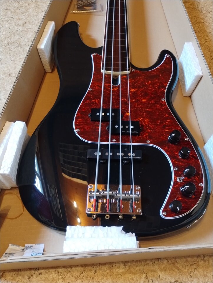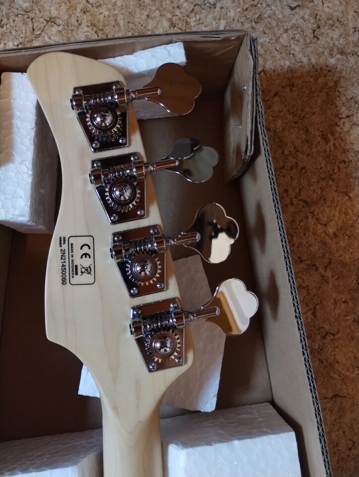 Sire typisch bekommt man hier wirklich sehr viel Bass fürs Geld. Aktuell mit La Bella White Nylons besaitet, die wie ich finde hervorragend zum Bass passen.