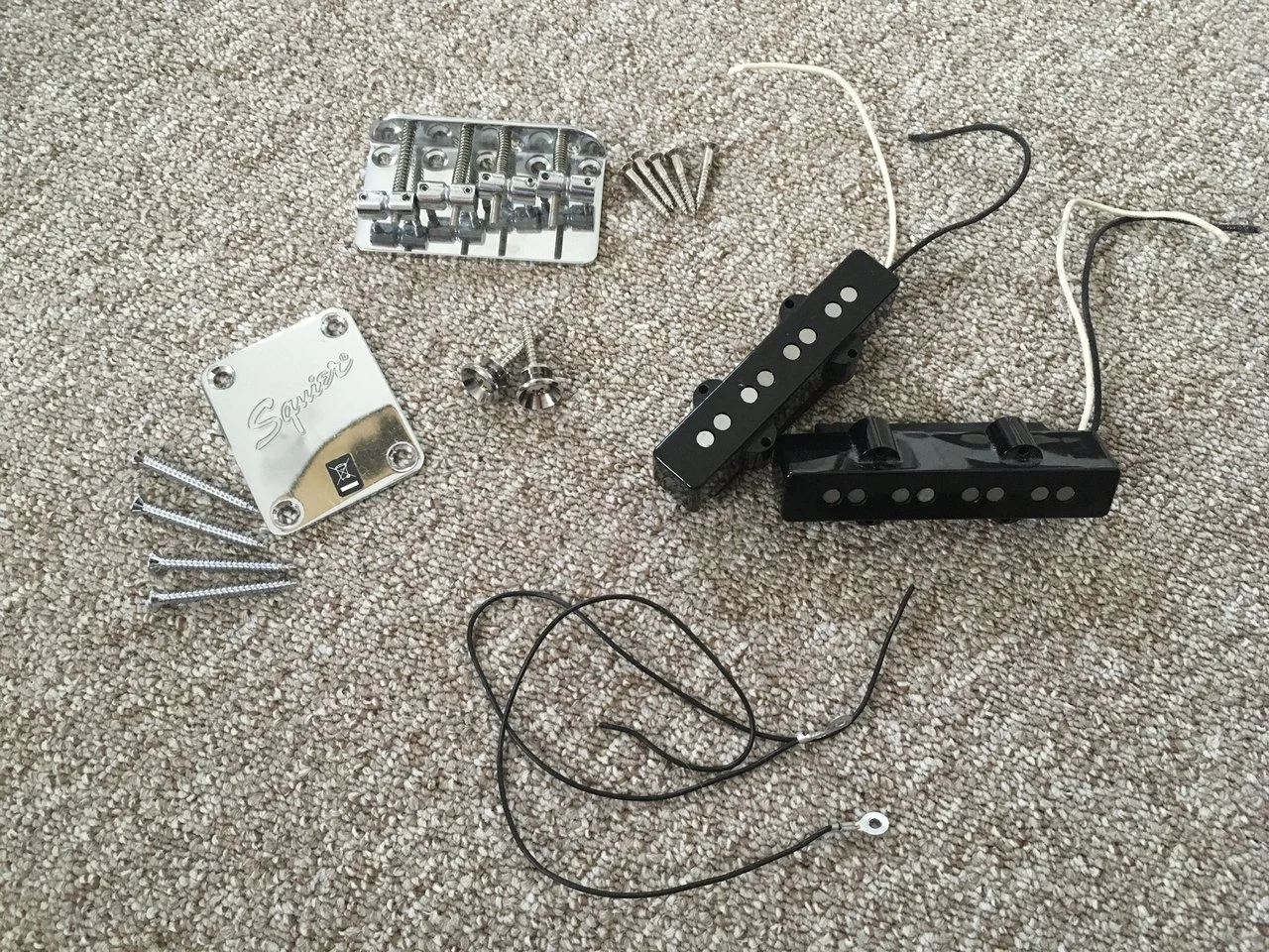 ich habe hier die restliche Hardware meines ehemaligen Squier by Fender VM Jazz Basses anzubieten.