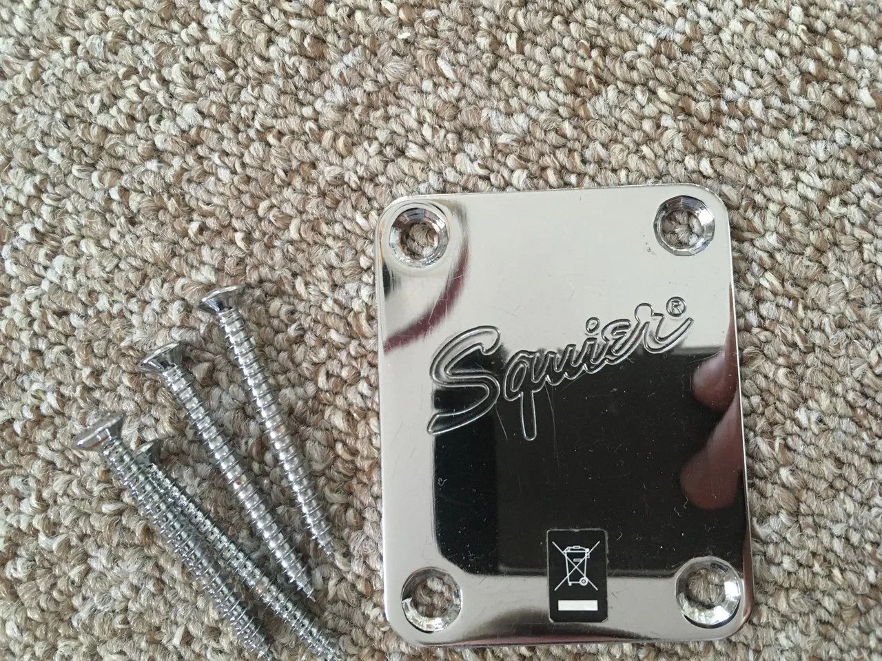 - 1 Neckplate „Squier“ chrom inklusive Schrauben
