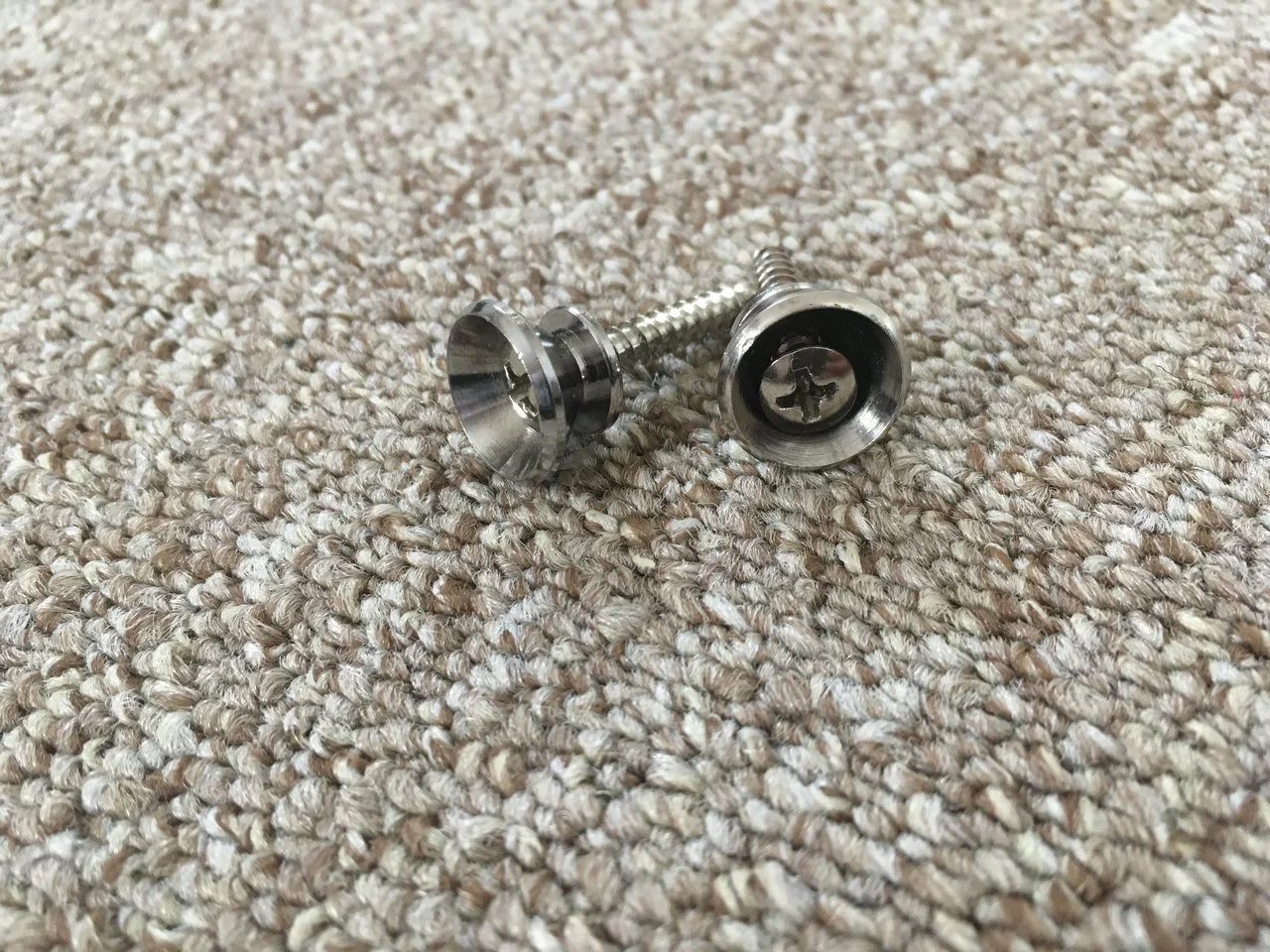 - 1 Paar Gurtpins chrom mit Schrauben (leider ohne die Filzunterlagen)