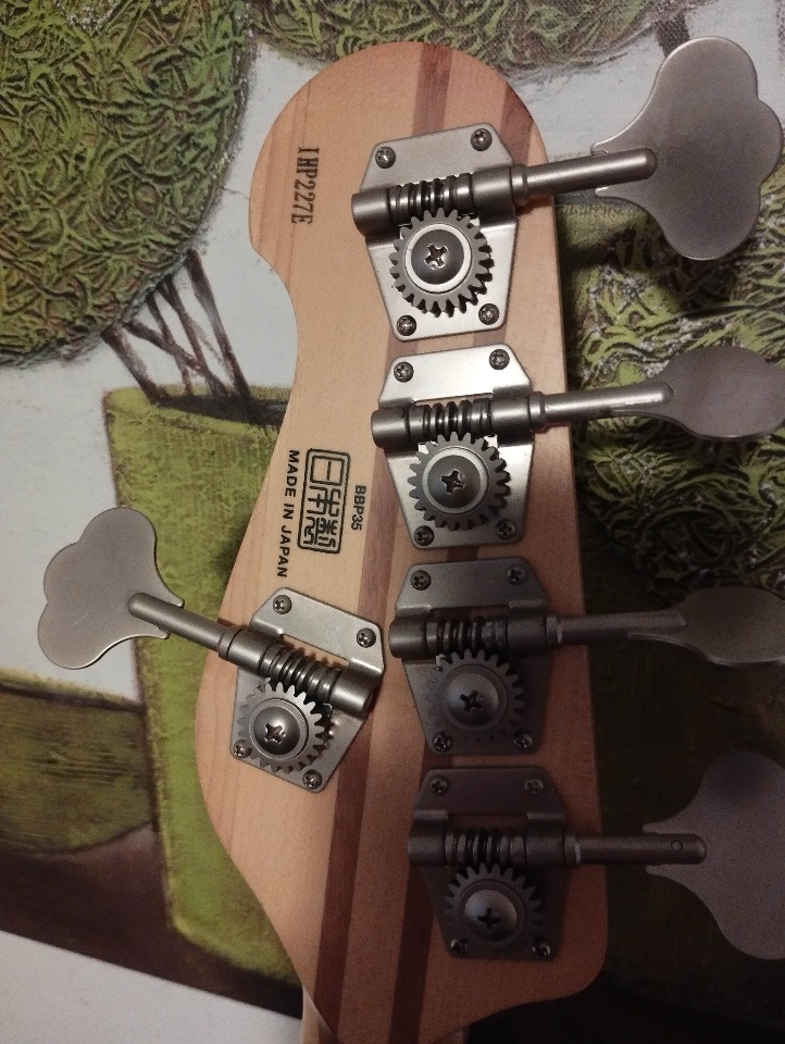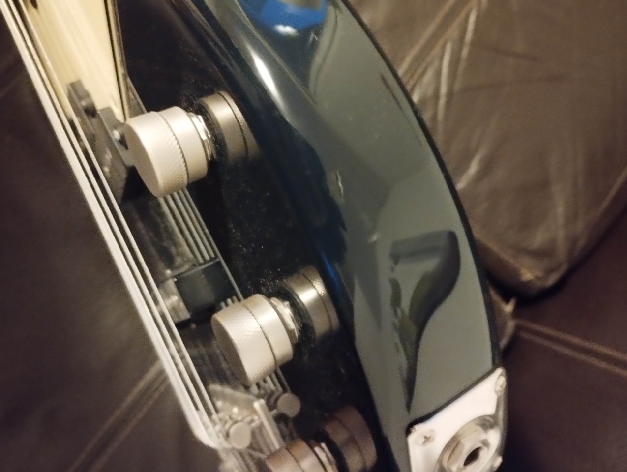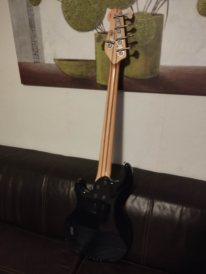 Ich habe den Bass letzte Saison gespielt. Daher gibt es zwei optische Spuren. Hinter der Bridge ist eine kleine Macke und an der Unterzarge gibt es eine Druckstelle. Beides habe ich versucht auf den Bildern festzuhalten. Technisch (Stimmstab, Elektronik und Wirbel) ist alles einwandfrei.
