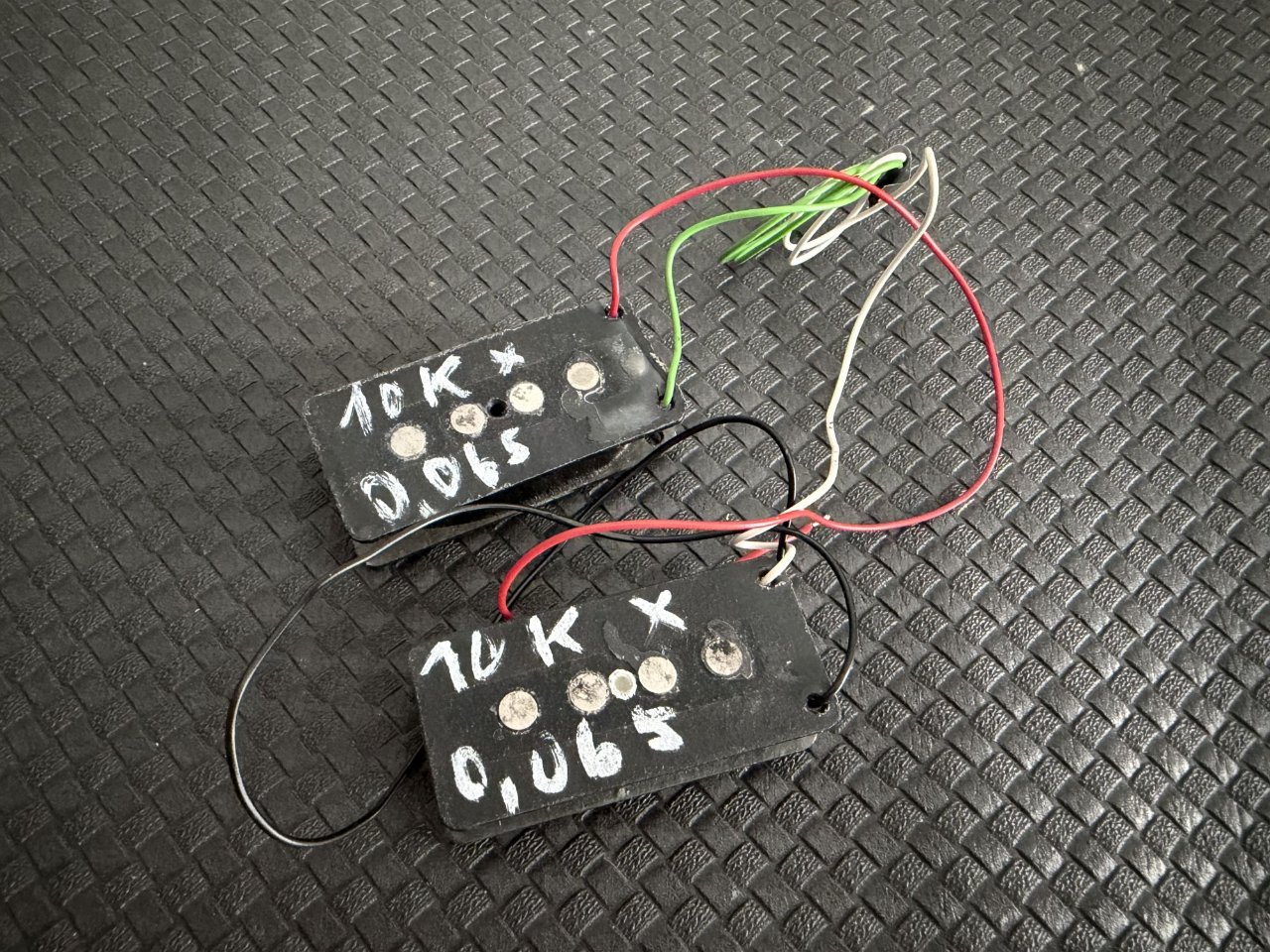 Wie auf den Bildern zu sehen ist der Pickup auf 10 kOhm gewickelt - ich habe 9,74 kOhm gemessen.