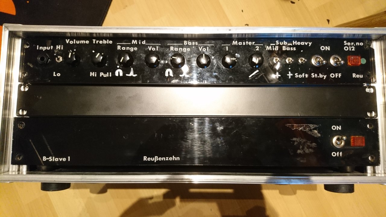 Die Endstufe ist ein Transistor Eisenschwein, schwer und gut mit straffen Sound.