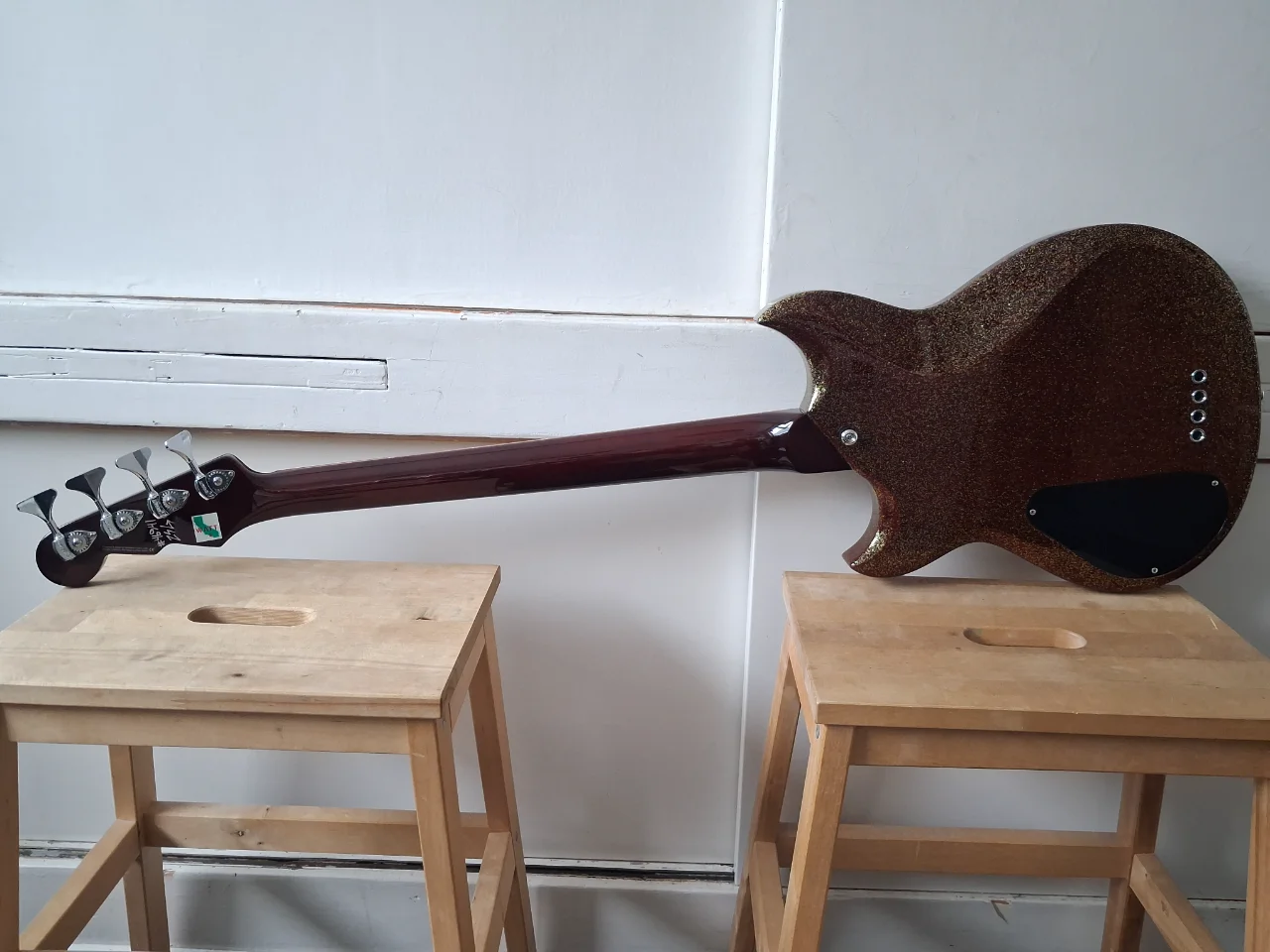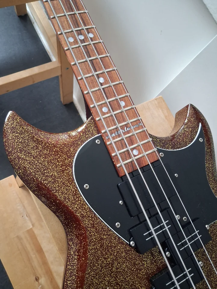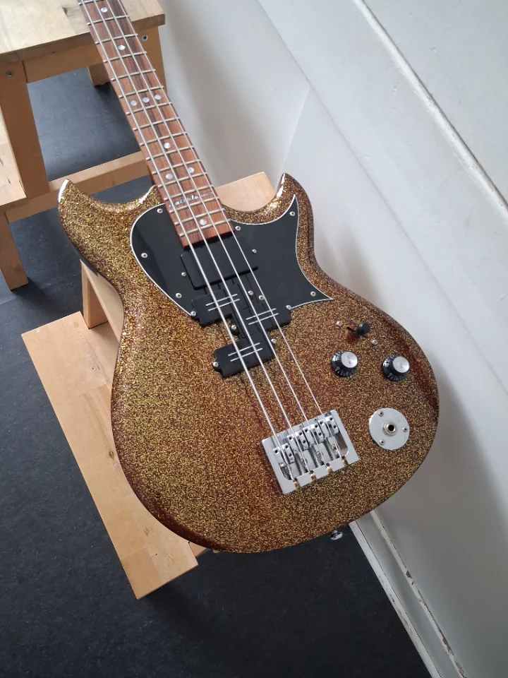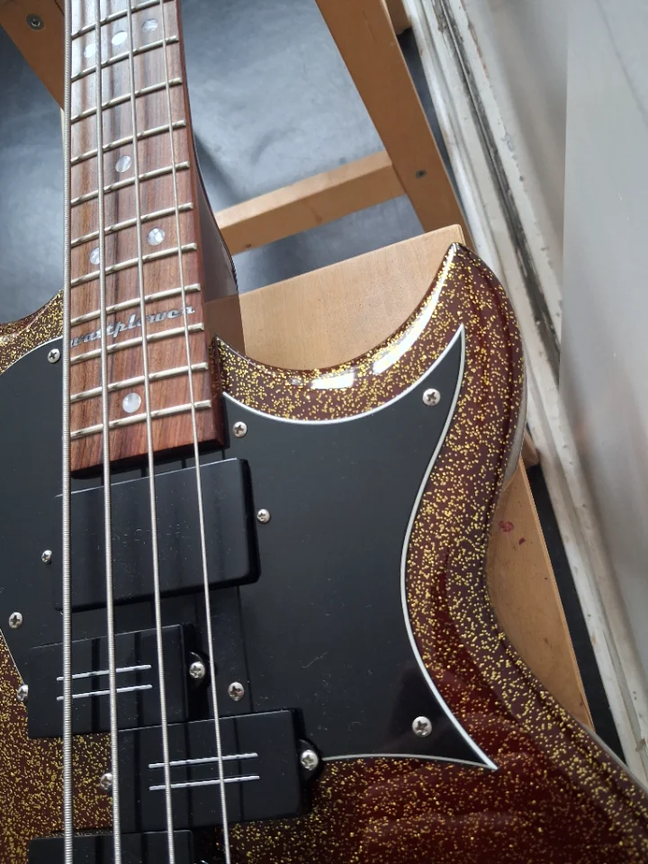 Kommt mit neuwertigen Ernie Ball Cobalt Flatwounds und gebrauchten Rounds.