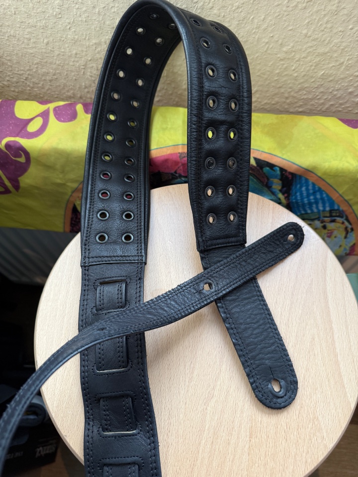 Gitarrengurt aus butterweichem Nappaleder mit coolen Metallösen (Grommets).