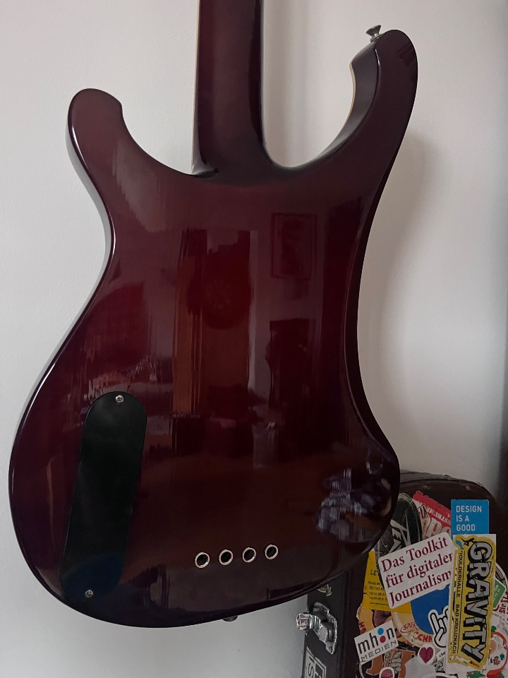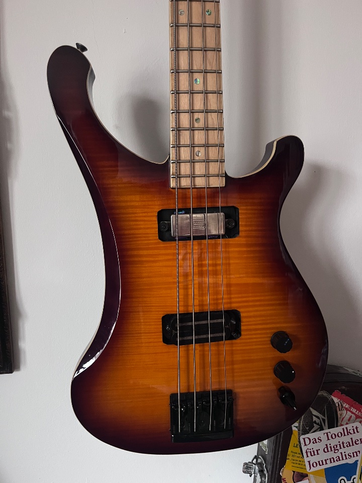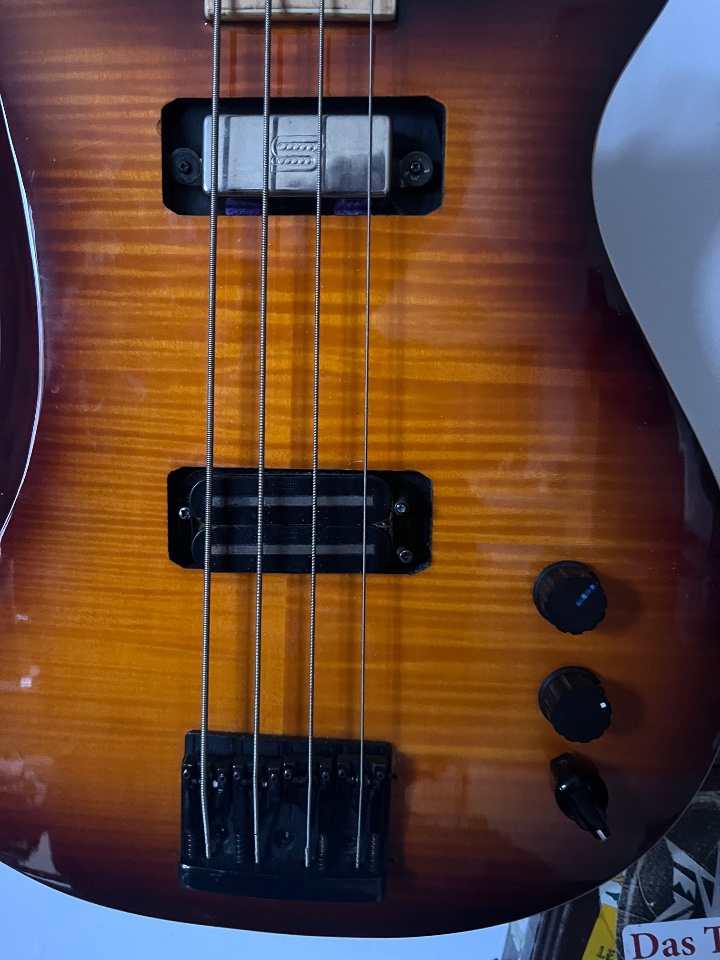 Habe den Bass nach meinen Vorstellungen optimiert: einstellbarer Messingsattel, Schaller Bridge in schwarz, schwarze Mechaniken (Sandberg), Seymour Duncan Rick PickUps, 2 x Vol und Lemme Filter (war die Idee des Vorbesitzers). Damit bekommt der Bass den Rick Growl und ist gleichzeitig sehr vielseitig.