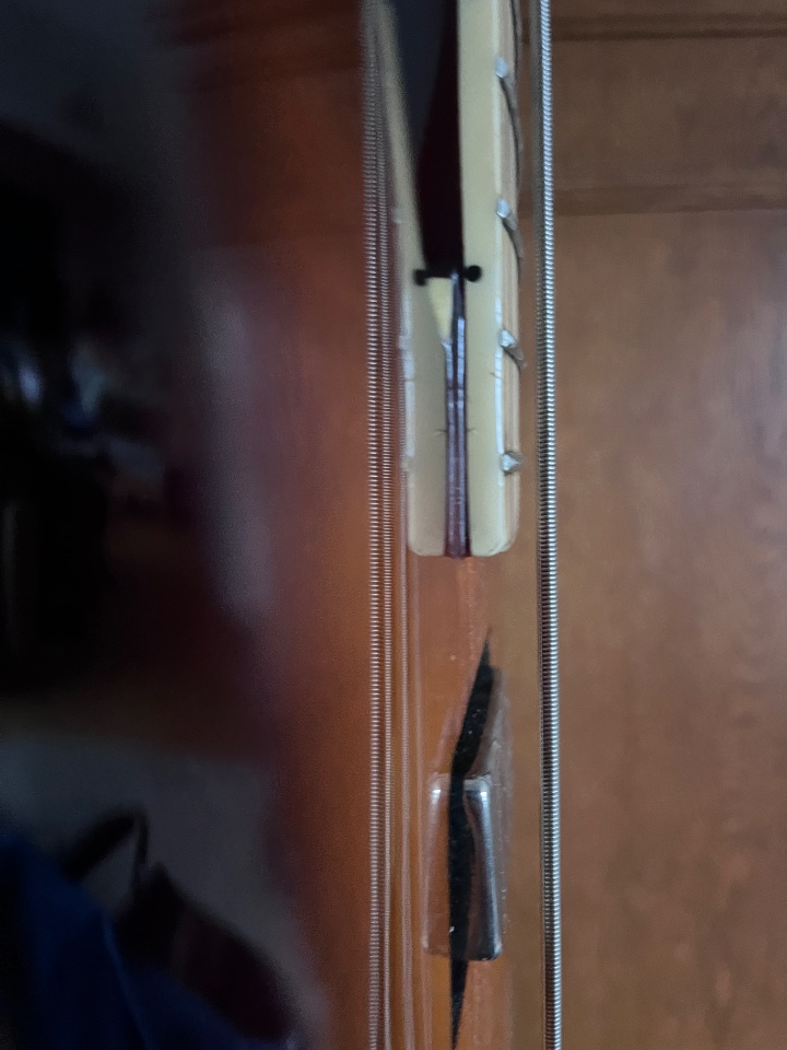 Der Hals ist recht schlank, grade, Halsspannstab funktioniert. Die Saitenlage ist schön flach eingestellt.