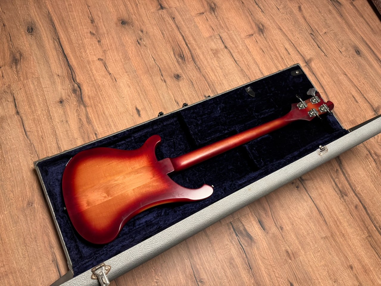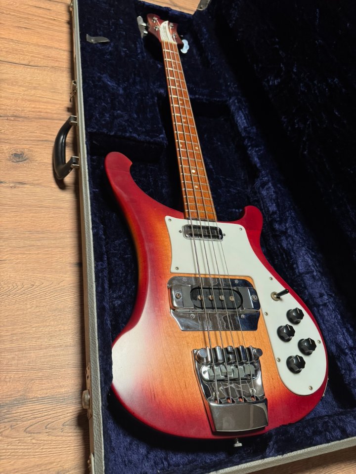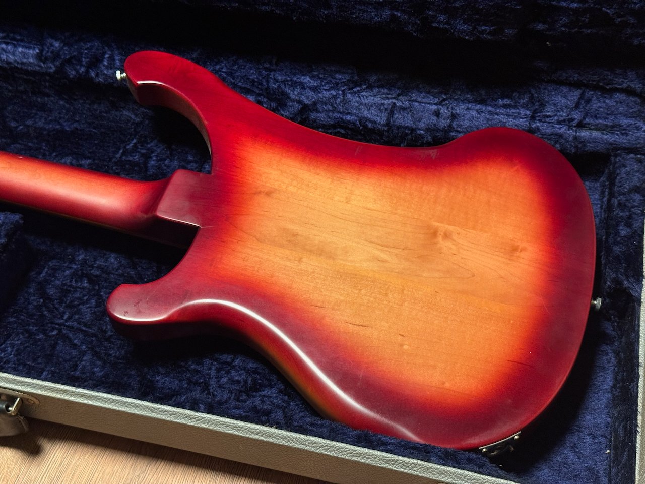 Ich verkaufe hier einen Rickenbacker 4001V63 von 1997 in der seltenen Farbe Satin Fireglo.