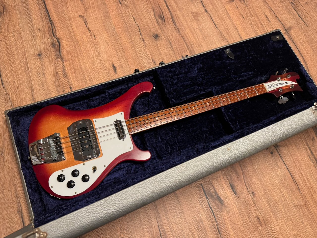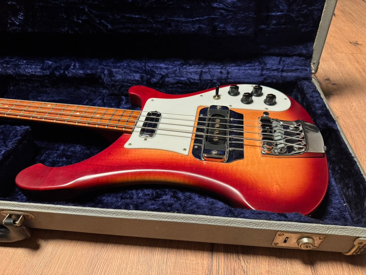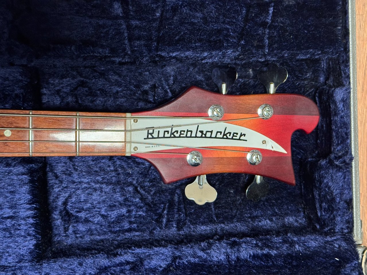 Ich verkaufe hier einen Rickenbacker 4001V63 von 1997 in der seltenen Farbe Satin Fireglo.