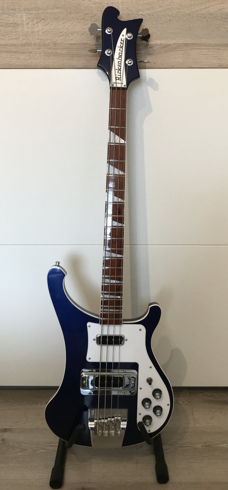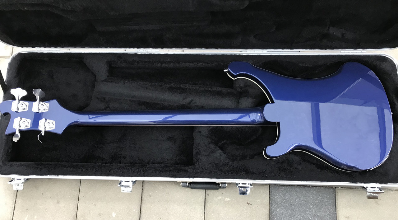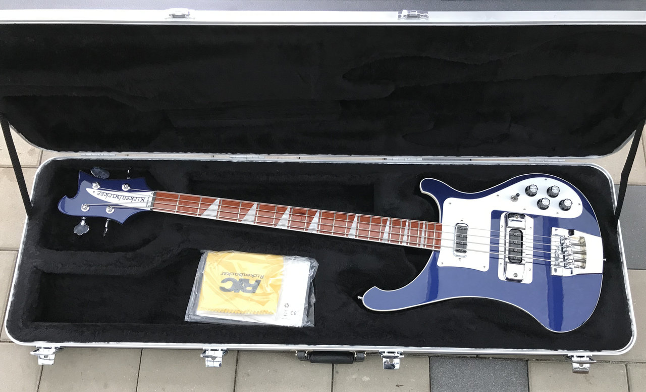 So soll als erstes mein Rickenbacker 4003 in Midnight Blue gehen. Ich habe ihn im Januar 2020 neu in einem Musikgeschäft gekauft, wo gleich der raschelnde originale Pickup Switch gegen einen zuverlässigen Göldo ausgetauscht wurde. Der Bass hat daraufhin nie mein Haus verlassen. Keine Proben, keine Gigs. Mir war der bisher viel zu schade. Aber das entspricht nicht seinem Naturell. Der Rick ist ein Player, der gerockt werden will. Am Röhrenamp ein Traum von einem Rocksound! - Oder an zwei Röhrenamps, weil Stereobuchse. Ja, nee, is klar!