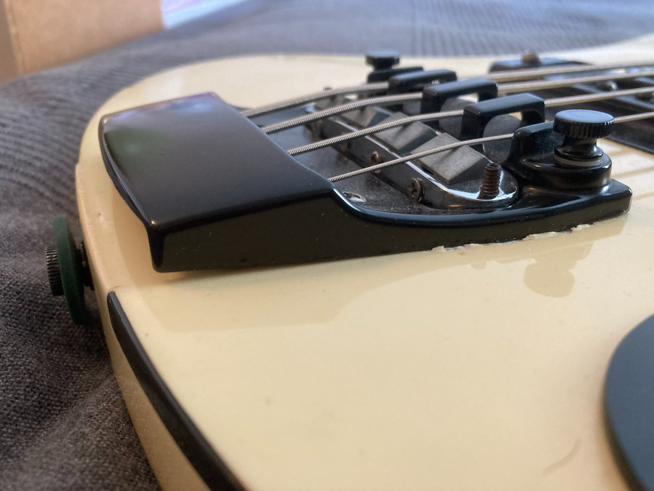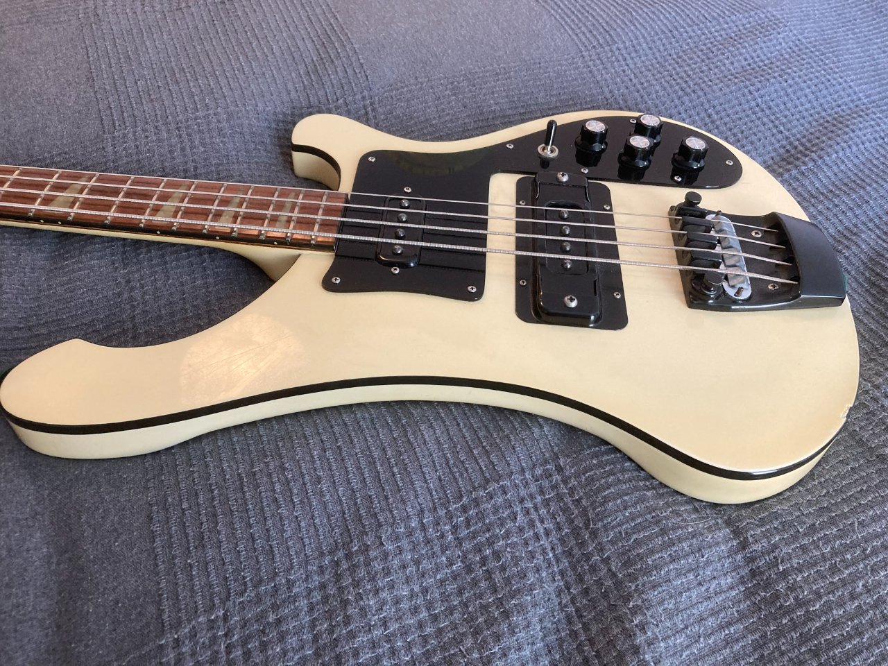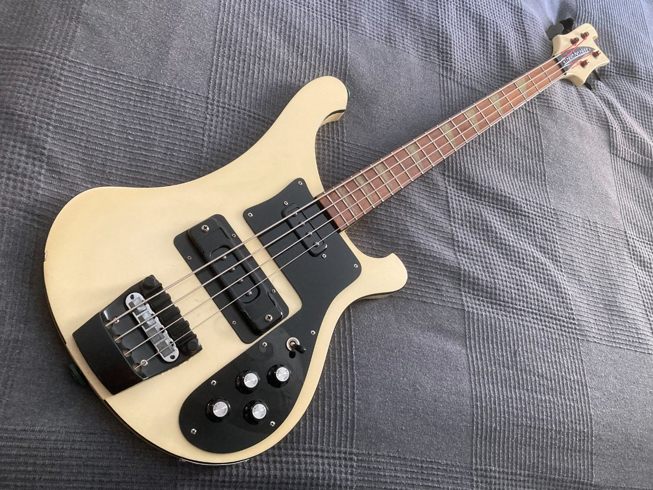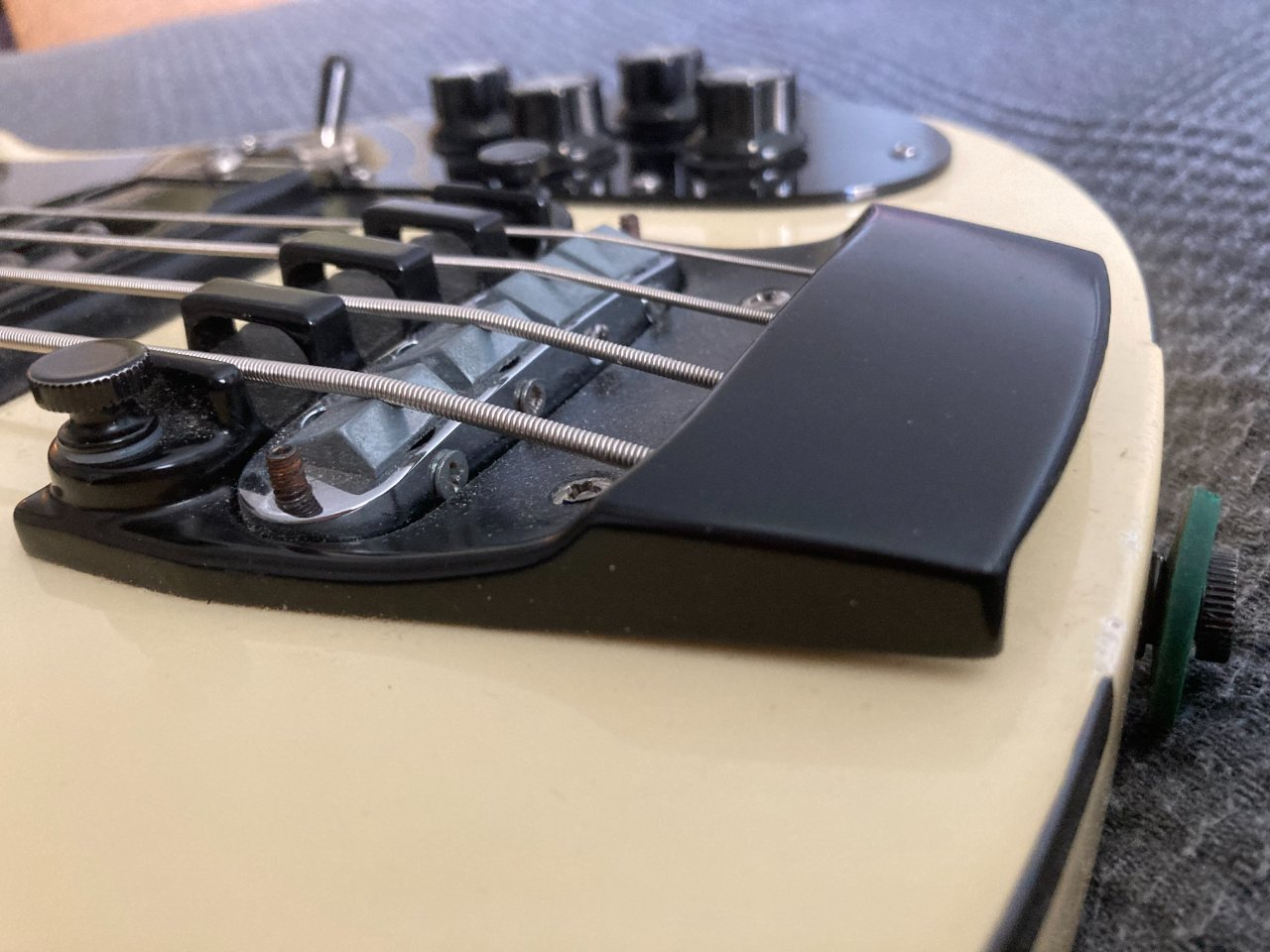 Alles original, das Push/Pull Poti fürs Umschalten zwischen 4003 bis 4001 Sounds, die seit 2006 standardmäßig in Rickenbacker Bässe eingebaut ist, wurde vom Fachmann (Captains Guitar Lounge) nachgerüstet. Damit hat man hier auch dieses Feature, sowohl den 4003, wie auch den Vintage 4001 Sound mit dem Kondensator im Stegpickup zu spielen. Dieser Bass hat im Vergleich zu den aktuellen