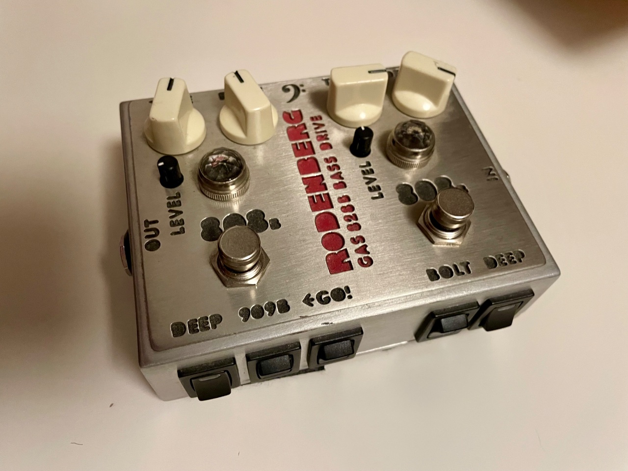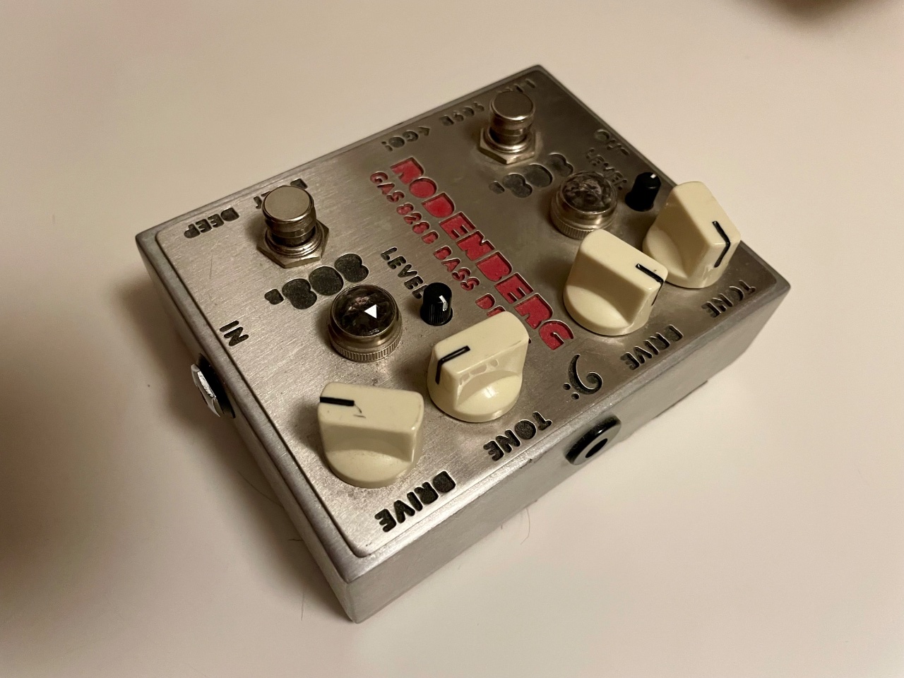 Man kam die beiden Zerrstufen entweder abwechseln oder hintereinander schalten. Die linke Seite ist auch als 909 mit mehr Zerre schaltbar. Als reiner Boost bzw. Boost &Zerre ist das Ding auch zu benutzen.
