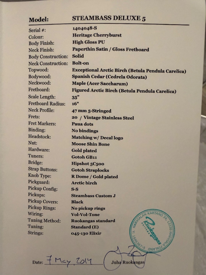 zum Verkauf steht mein Ruokangas Steam Bass Deluxe als 5 Saiter.