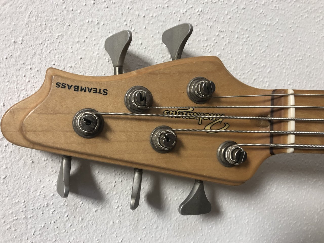 Der Bass war der Prototyp der Steambass Serie mit der alten Kopfplatte. Er ist somit extrem selten .. wenn nicht sogar ein Einzelstück. Er ist immer noch in der Galerie auf Juhas Homepage zu sehen.
