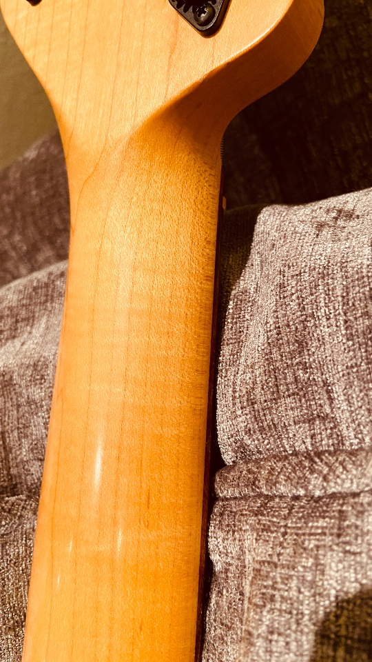 - Maple Neck (quartersawn, resulting in vertical growth rings, see photos)