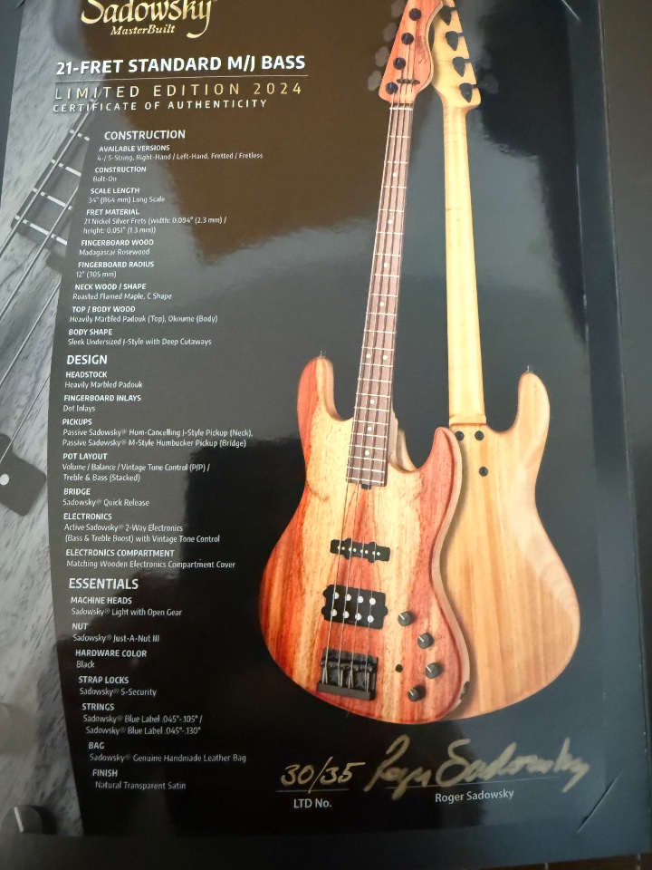 Alle Zertifikate, Dokumente und Werkzeuge die von Werk aus dabei waren, werden mitverkauft. Der Bass wird in einem originalen Sadowsky Portabag verkauft/versandt.