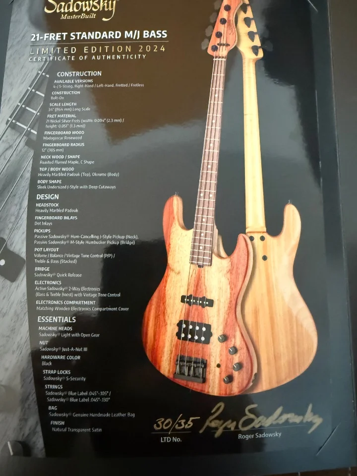 Alle Zertifikate, Dokumente und Werkzeuge die von Werk aus dabei waren, werden mitverkauft. Der Bass wird in einem originalen Sadowsky Portabag verkauft/versandt.