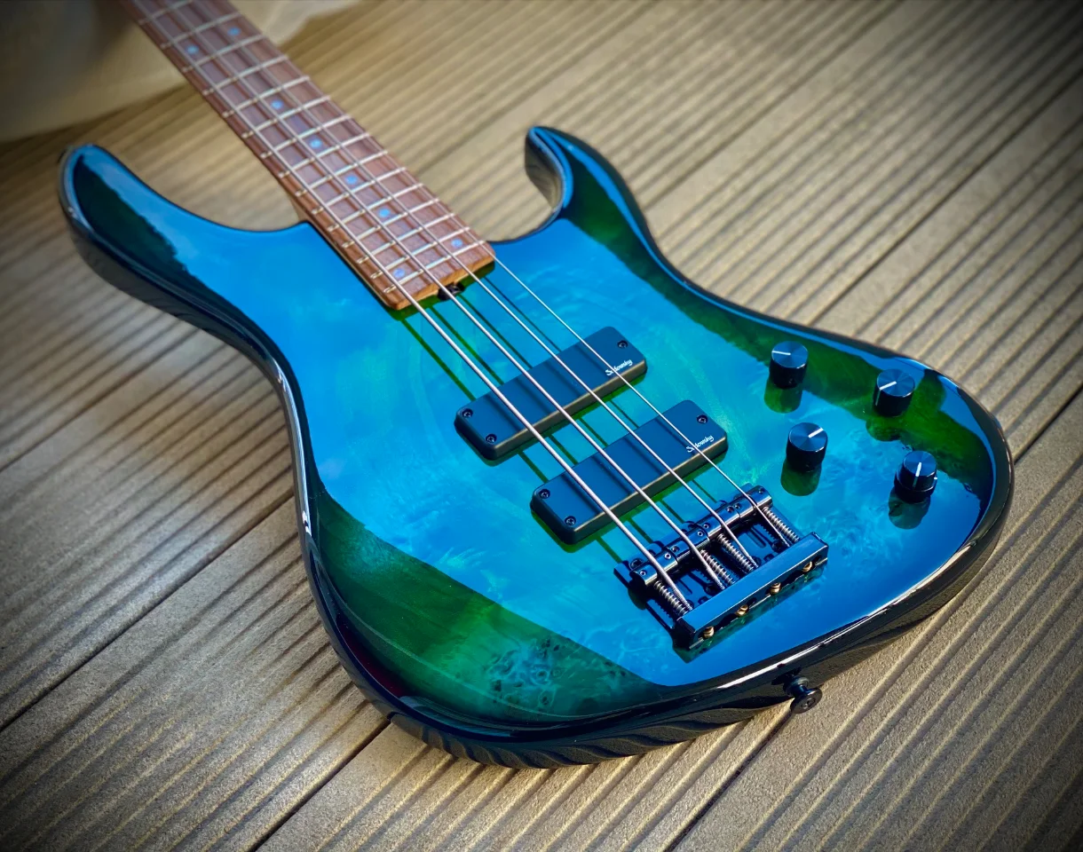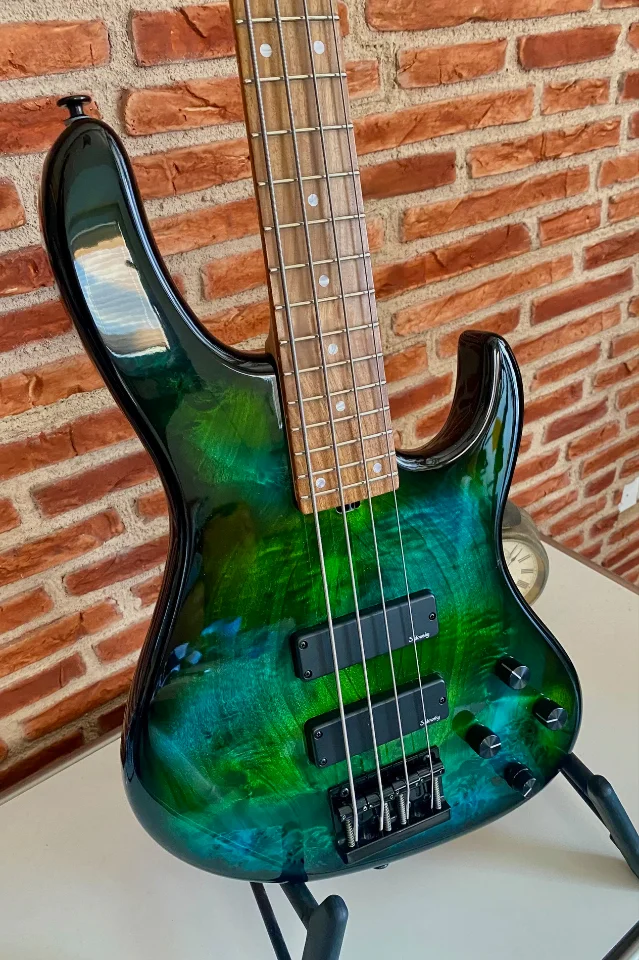 Ich biete einen großartigen Sadowsky MetroLine 24-4 Modern Bass in der auf 50 Stück limitierten Nebula-Lackierung an. Der Bass ist in neuwertigem Zustand, spielt sich superangenehm und klingt modern knackig und voll und rund im Bassbereich. Bünde und Hals sind hervorragend abgerichtet, d.h. eine niedrige Saitenlage ist problemlos einstellbar.