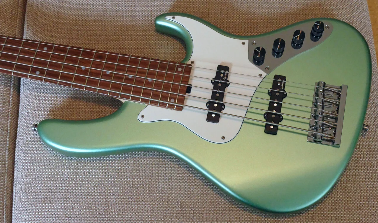 Wunderschöner "Jazzbass" in der Farbe "Sage Green Metallic".