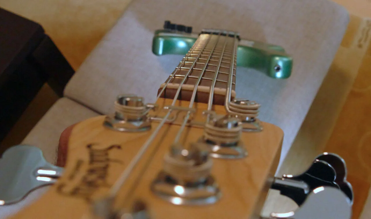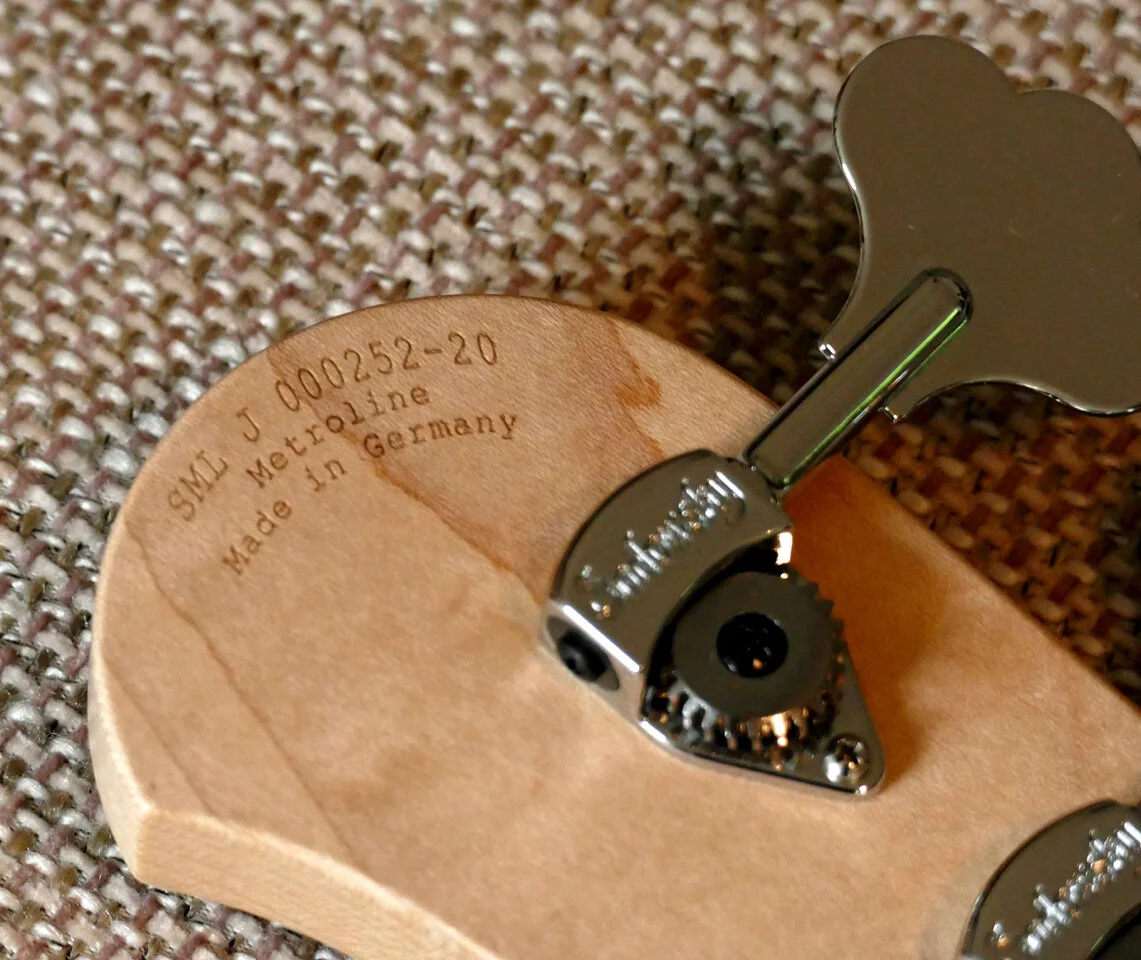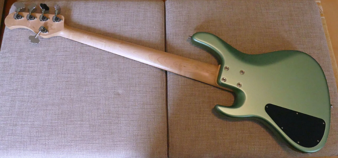 Der Body besteht aus amerikanischer Roterle (Alder), der Hals aus Ahorn (Maple) mit Morado-Griffbrett (ähnlich Palisander).