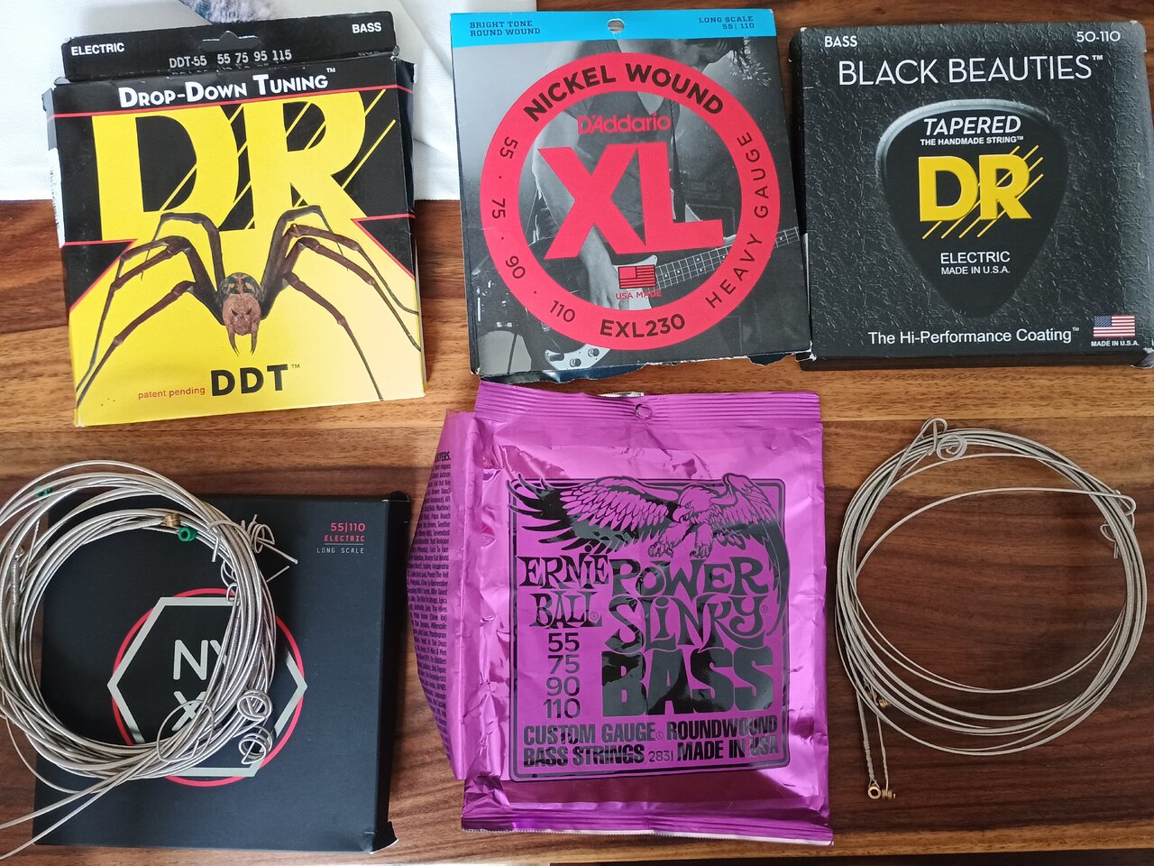 Auf der Suche nach DEM Ton, biete ich ein Dutzend weniger oder noch weniger gebrauchte Saitensätze an. Es sind alle 4-String und eher die stärkeren Varianten (also 50 und mehr).