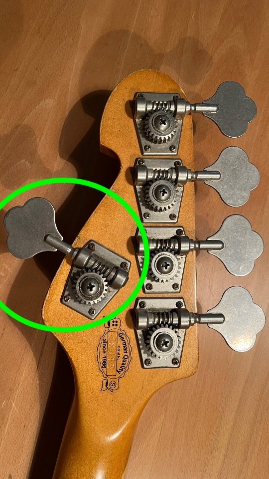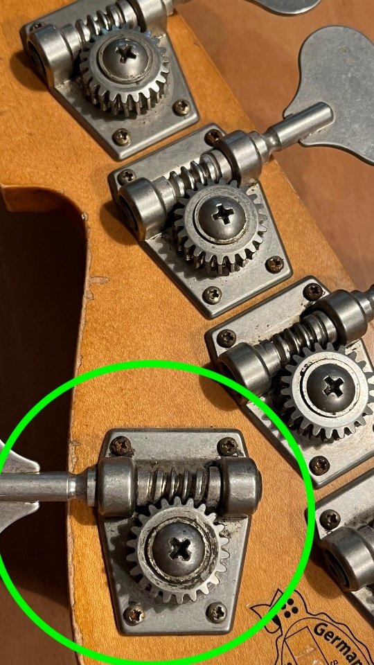 Ich verkaufe eine Stimm-Mechanik für z.B. einen Fünf-Saiter in Nickel aged, künstlich gealtert.