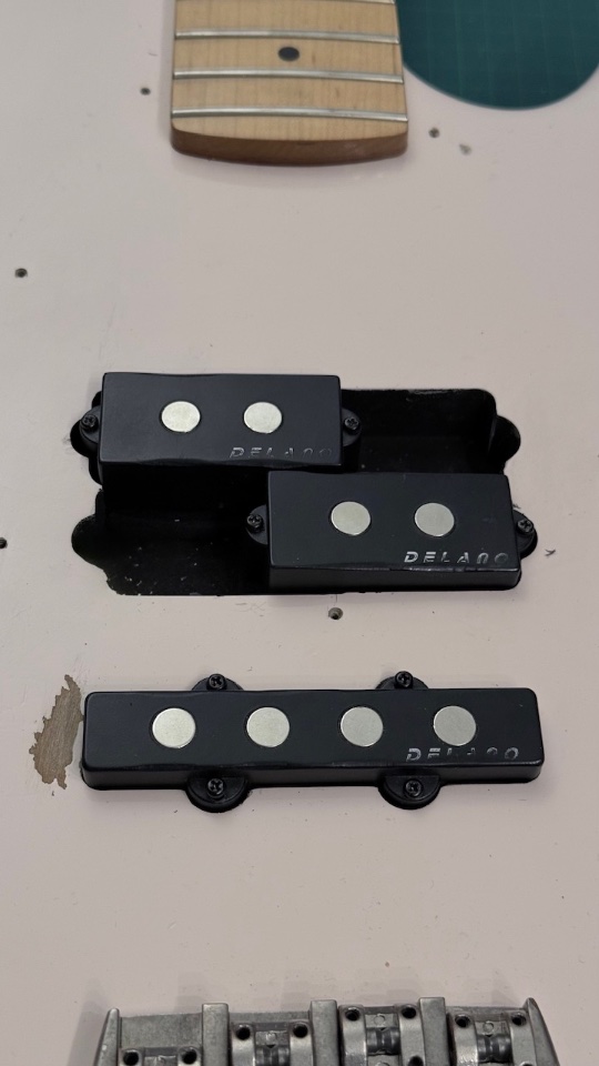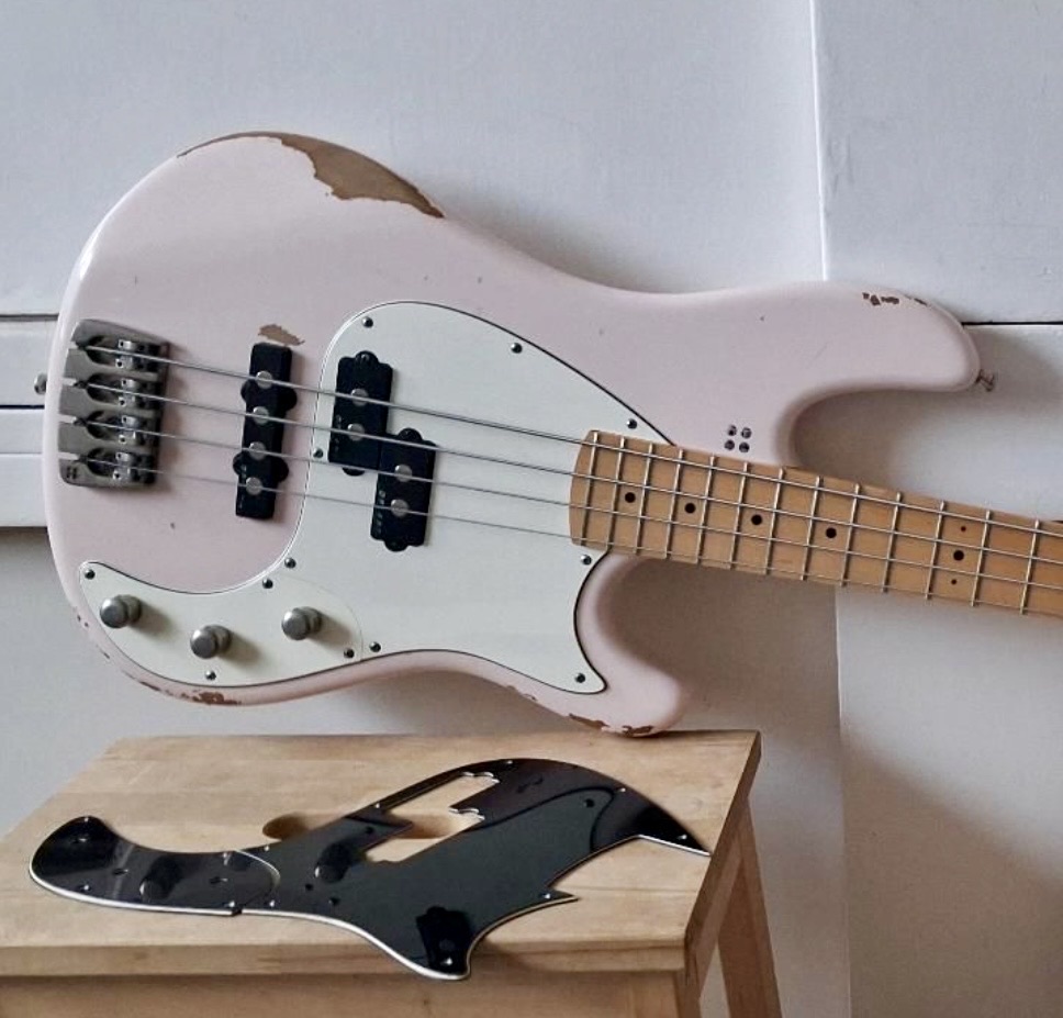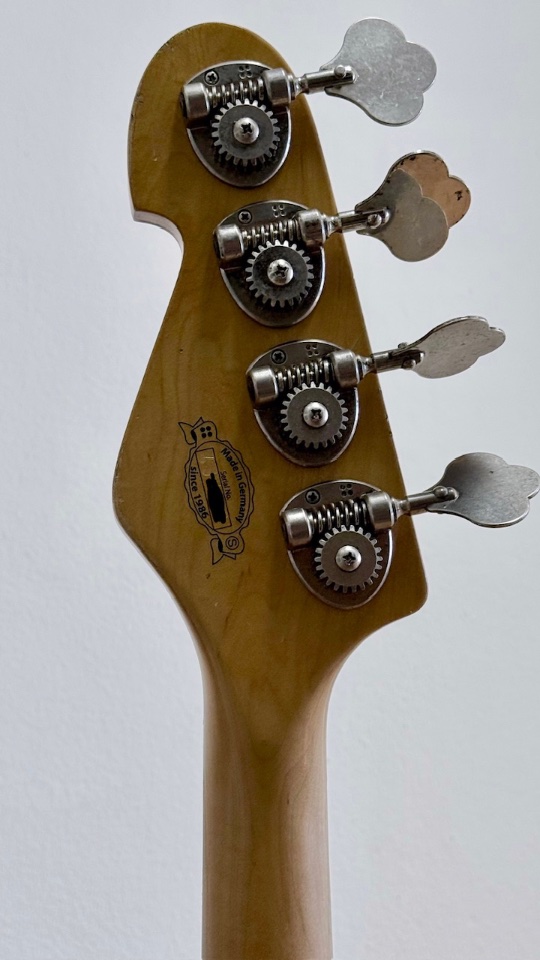 Als Besonderheit hat der Bass bei Gitarrenbau-Meister Stefan Meigel eine erweiterte PU-Fräsung erhalten, die es ermöglicht neben der gedrehten Sandberg "Reverse Splitcoil"-Anordnung den Splitcoil auch in der klassischen, Fender-üblichen Orientierung einzubauen (siehe u.a. Bild 2). Somit hat man im Prinzip alle P-Bass Sound Optionen an der Hand. Die PU Orientierung kann mit einem PH2 Schraubendreher ohne Lötarbeiten bequem geändert werden.