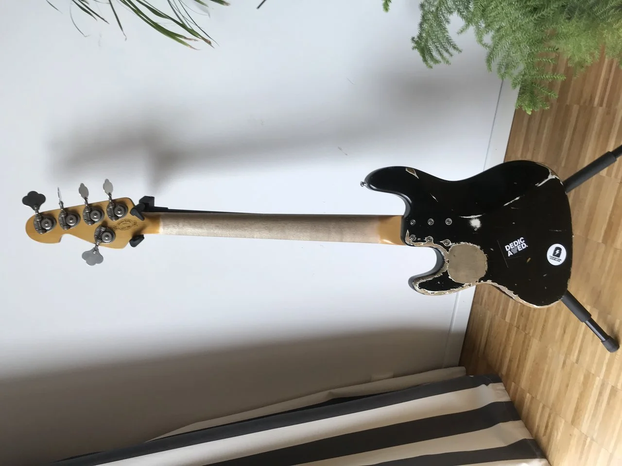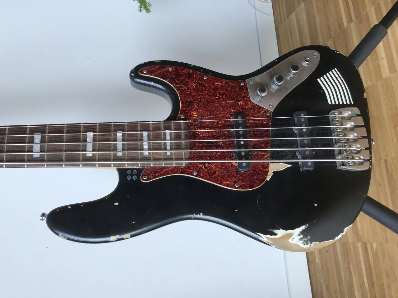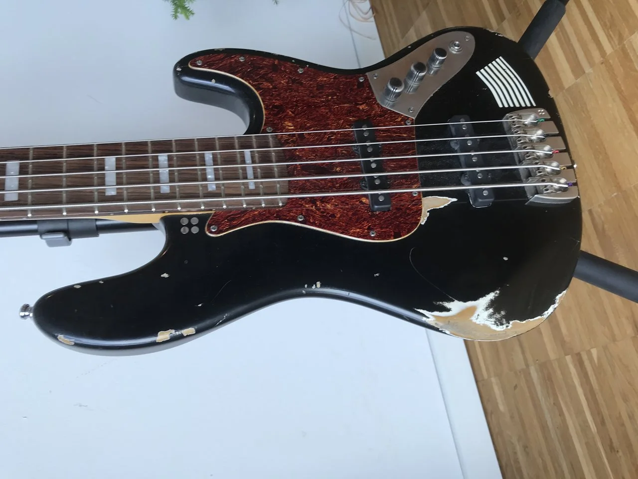 Sehr schöner 5-Saiter in Hardcore Aging und mit Vibration Treatment. Lässt sich sehr leicht spielen – eine höhere Saitenlage könnt Ihr natürlich auch einstellen.