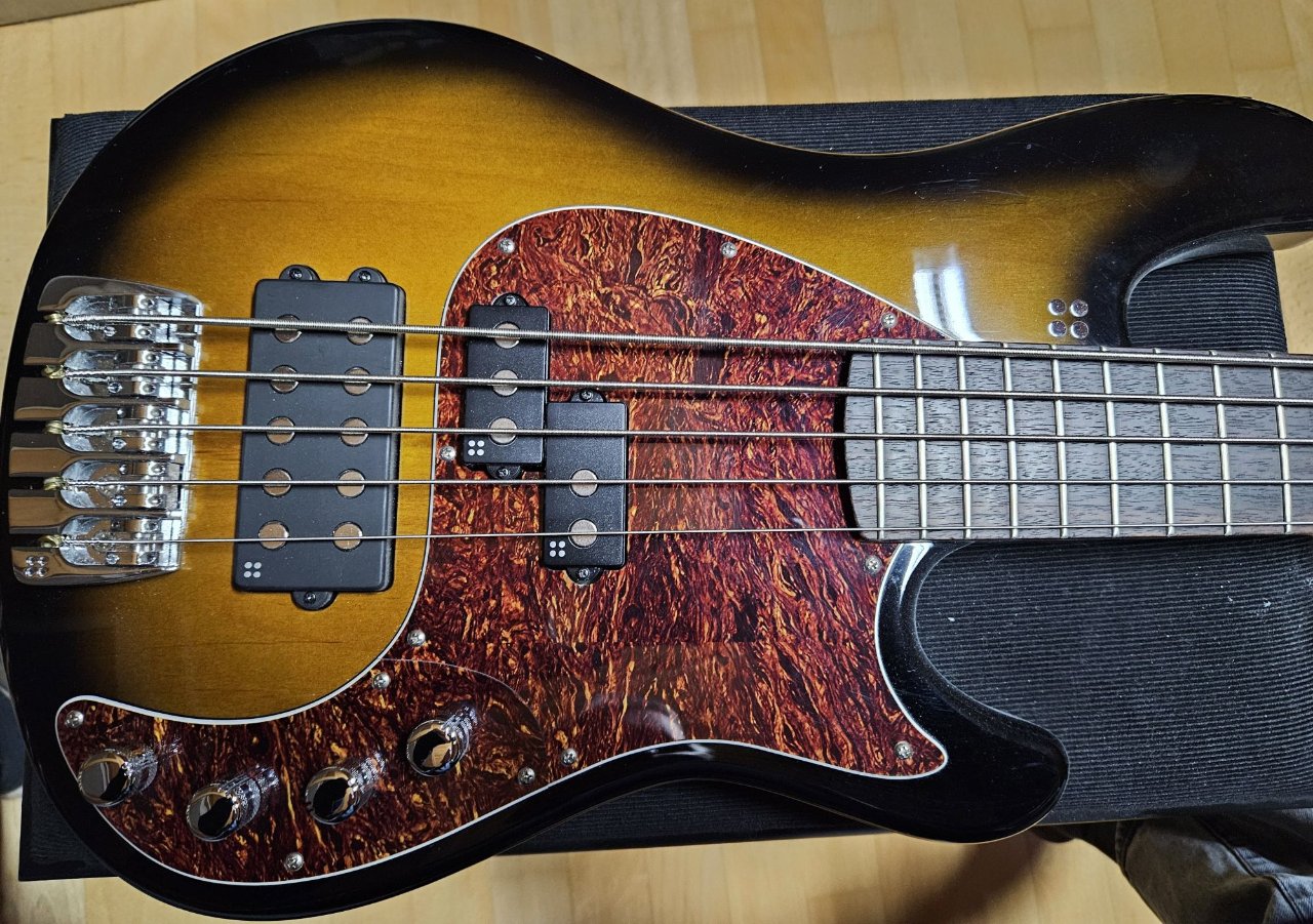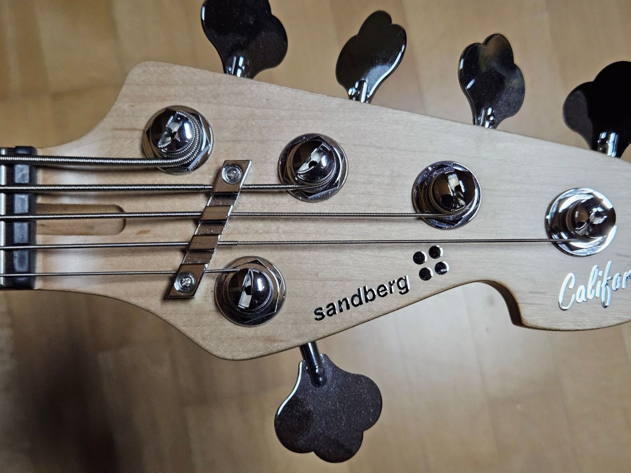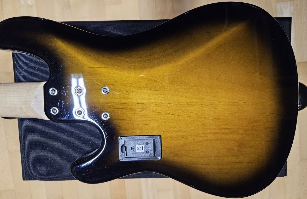 ich biete hier meinen Sandberg VM5 in Tobacco-Burst Highgloss an. Der Korpus ist aus Erle, Hals Ahorn und Griffbrett Palisander (sehr schön gleichmässig gemasert), Mensur 34 Zoll, das Gewicht liegt bei 3,96 kg auf der Küchenwaage. Im Lieferumfang enthalten ist neben dem Bass der originale Gigbag samt Werkzeug und Hangtag.