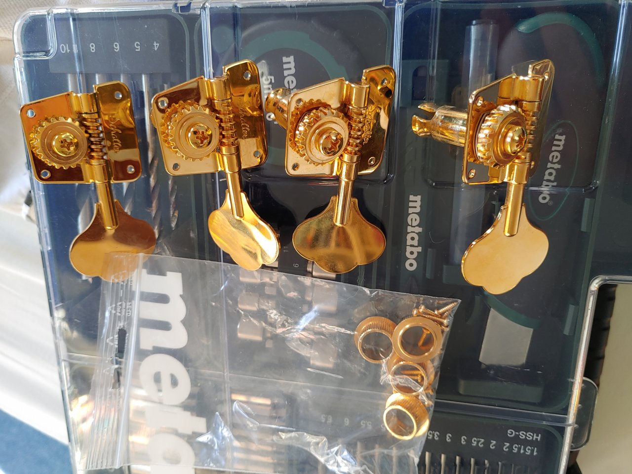 Biete vier Schaller BMF Gold vier links mit Hülsen und Schrauben.