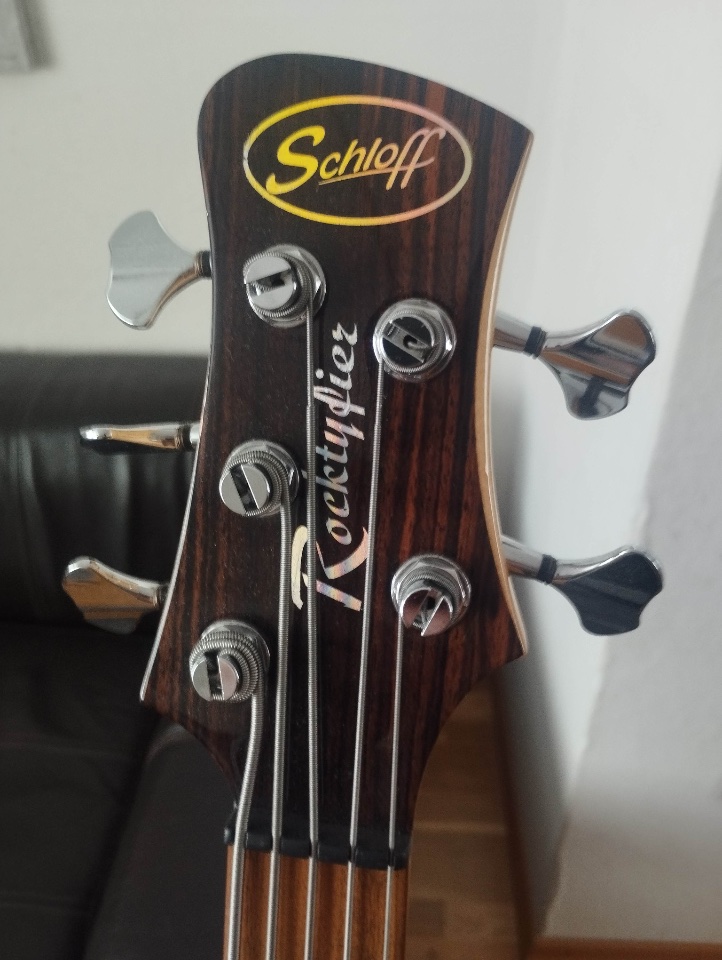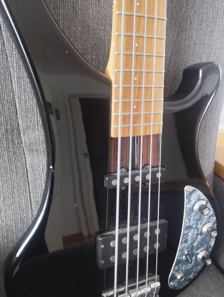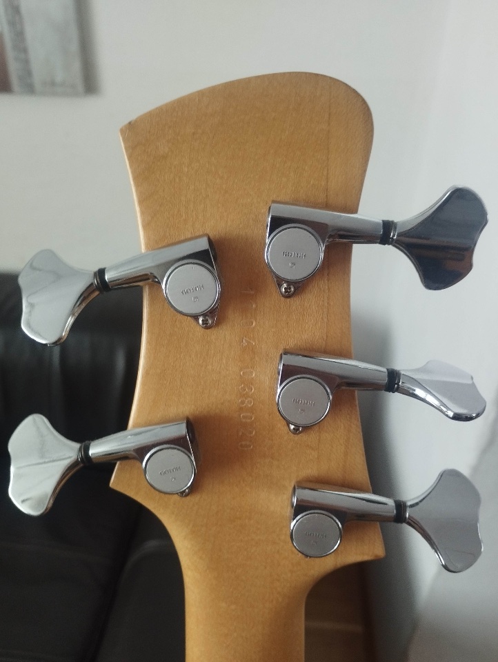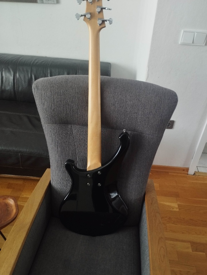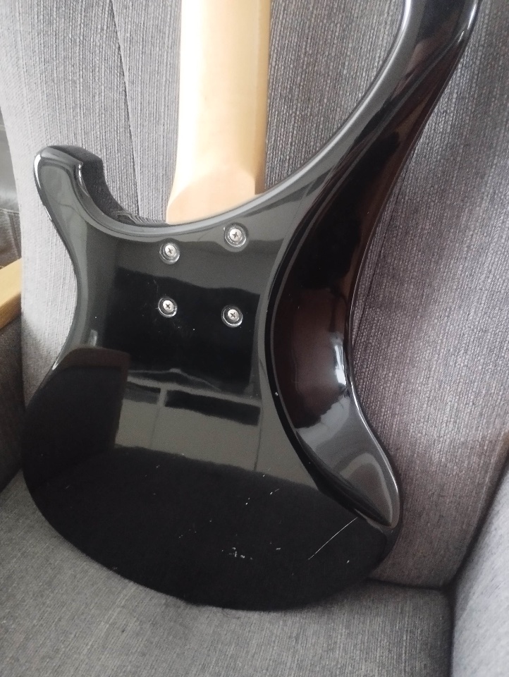 Der Bass war letzte Saison mein Rockbass bei Auftritten. Dementsprechend sind Kratzer auf der Rückseite und eine Macke auf der Oberzarge zu finden. Ich hoffe, dieses wird durch die Fotos sichtbar.