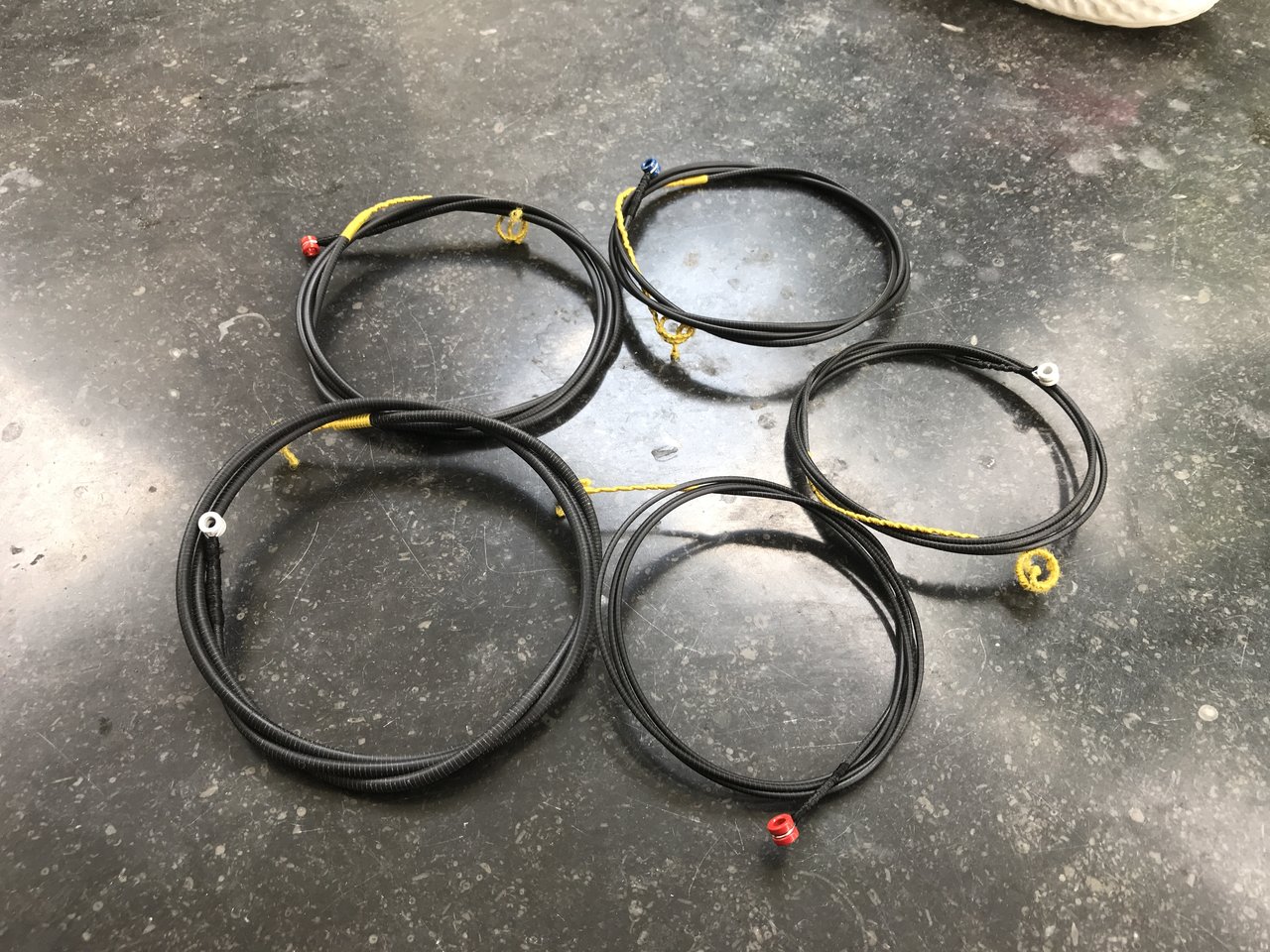 ich habe gerade einen Satz schwarze Flatwounds abgezogen, da sie mir für meinen Fretless zu dick waren.