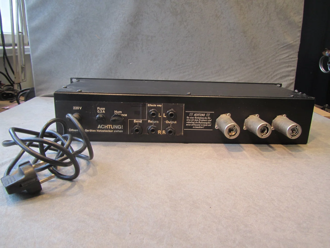 Fetter Sound mit 3 Röhren. 4 Fach Klangregelung mir Mid- und Bass Halbparametrik. Stereo-Einschleifweg für Effekte.