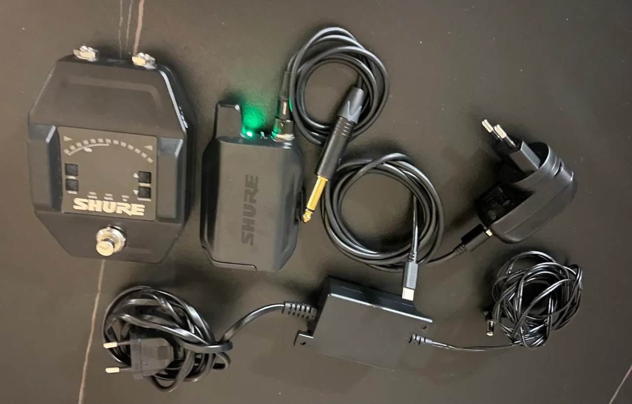 - mit GLXD1+ Taschensender, GLXD6+ Pedalboardempfänger und Wa 305 Gitarrenkabel