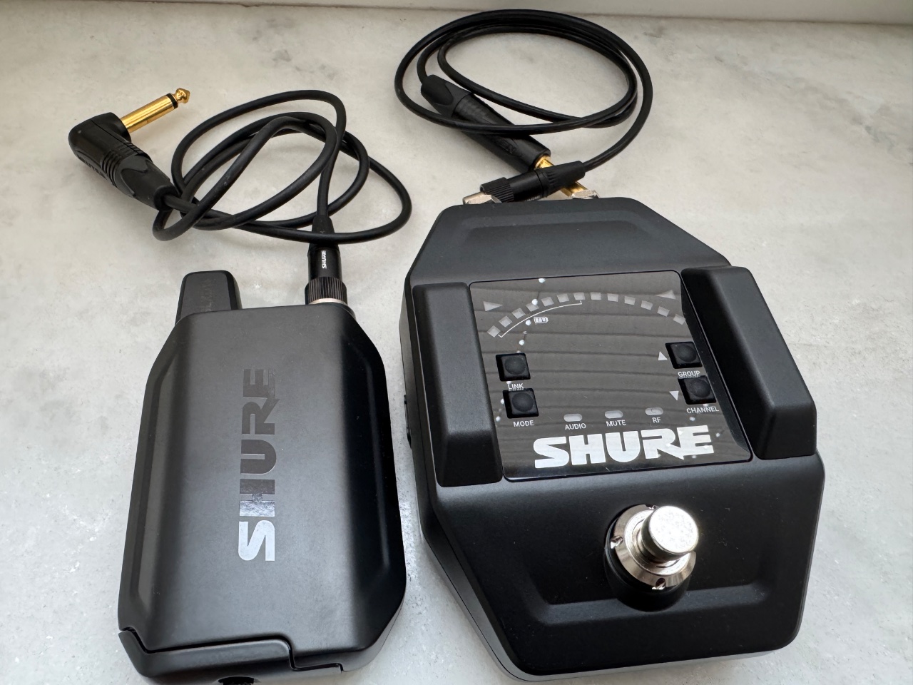 Ein Spitzengerät, supersolide im Set, mit GLXD1+ Taschensender und GLDX6+ Pedalboard-Empfänger auch als Tuner zu nutzen – zwei Gitarrenkabel dabei, eines etwas länger, und eine passende neue und ungenutzte Tasche von Richter für den Gurt. Verkaufe, weil ich auf ein kleineres Sendesystem umgestiegen bin, da ich die Leistungsfähigkeit vom GLX gar nicht brauche. Kaum genutzt, ein, zwei Male live gespielt, sonst nur im Proberaum. Alles makellos und wie neu. Super Reichweite von ca. 60 Metern, 12 Stunden Akkulaufzeit. Ca 1,5 Jahre alt. Ohne OVP.