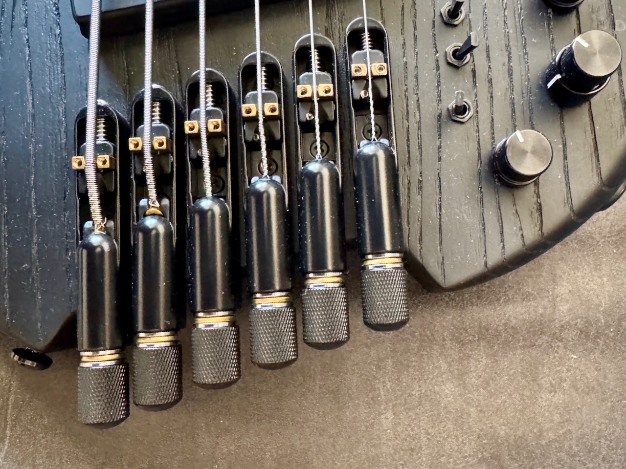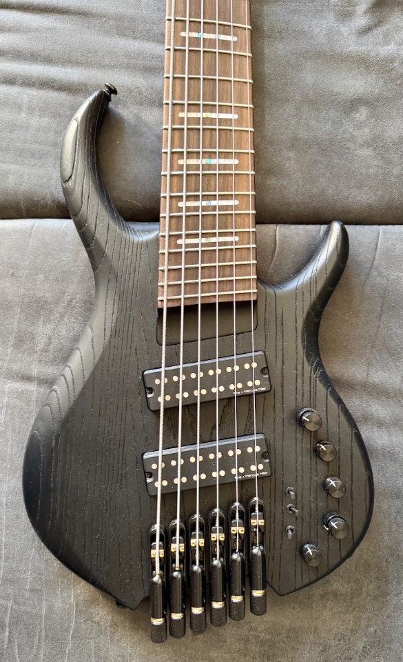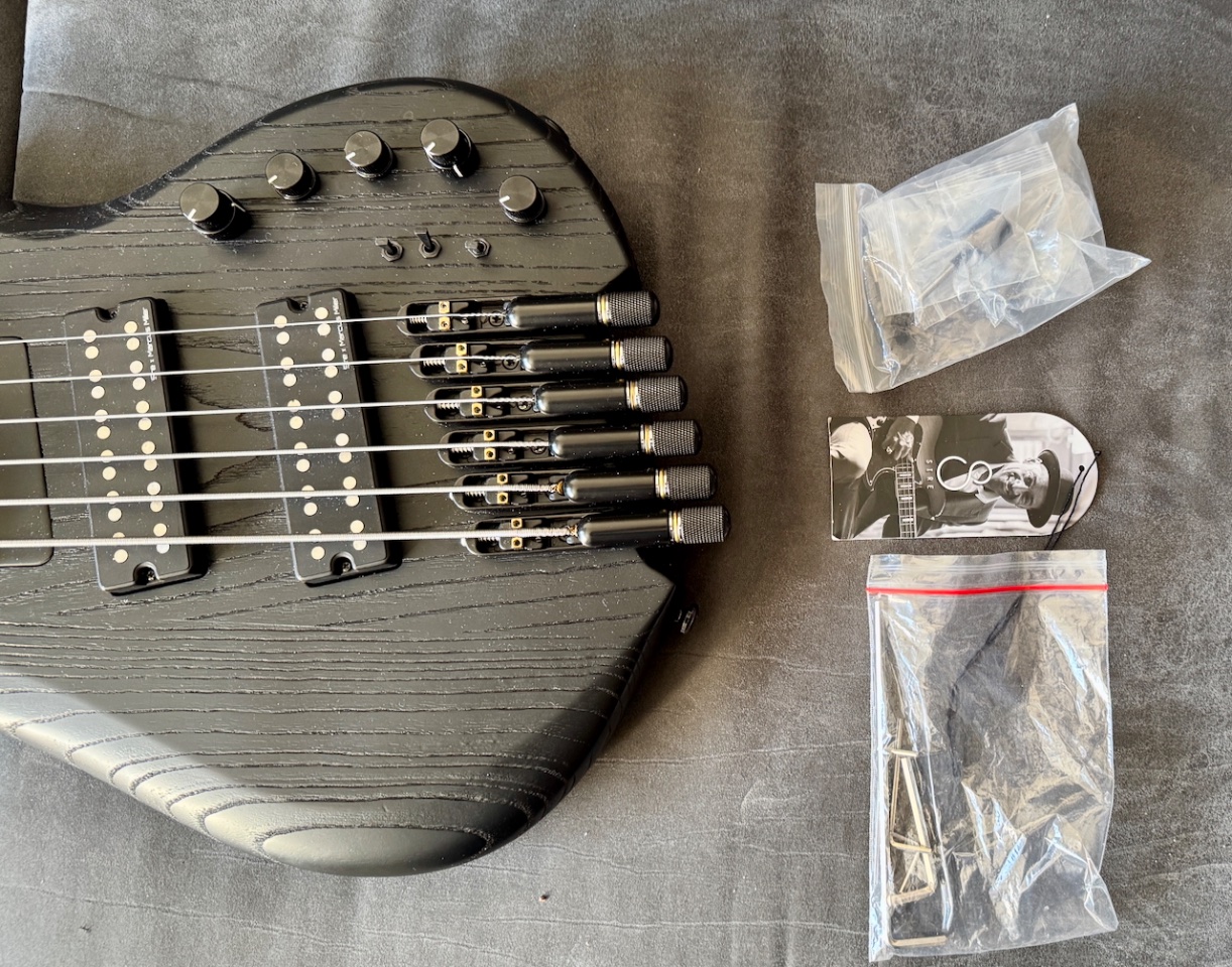 Ich habe dem Bass frische Dunlop Superbrights Stainless Steele Saiten 130-30 und ein perfektes Setup spendiert.