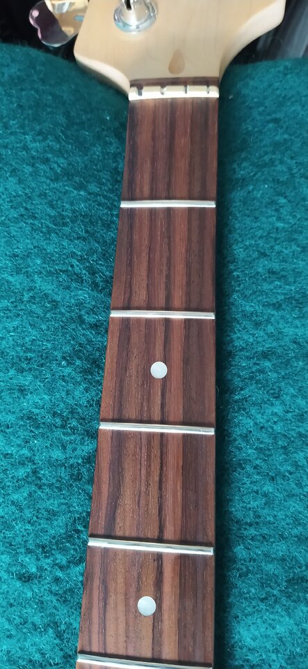 Hals Ahorn,Palisander Griffbrett,Bünde leichte Spielspuren,Stellschraube Hals Ok.,Mechaniken Ok.Ist nur mit Flatwounds bespielt worden