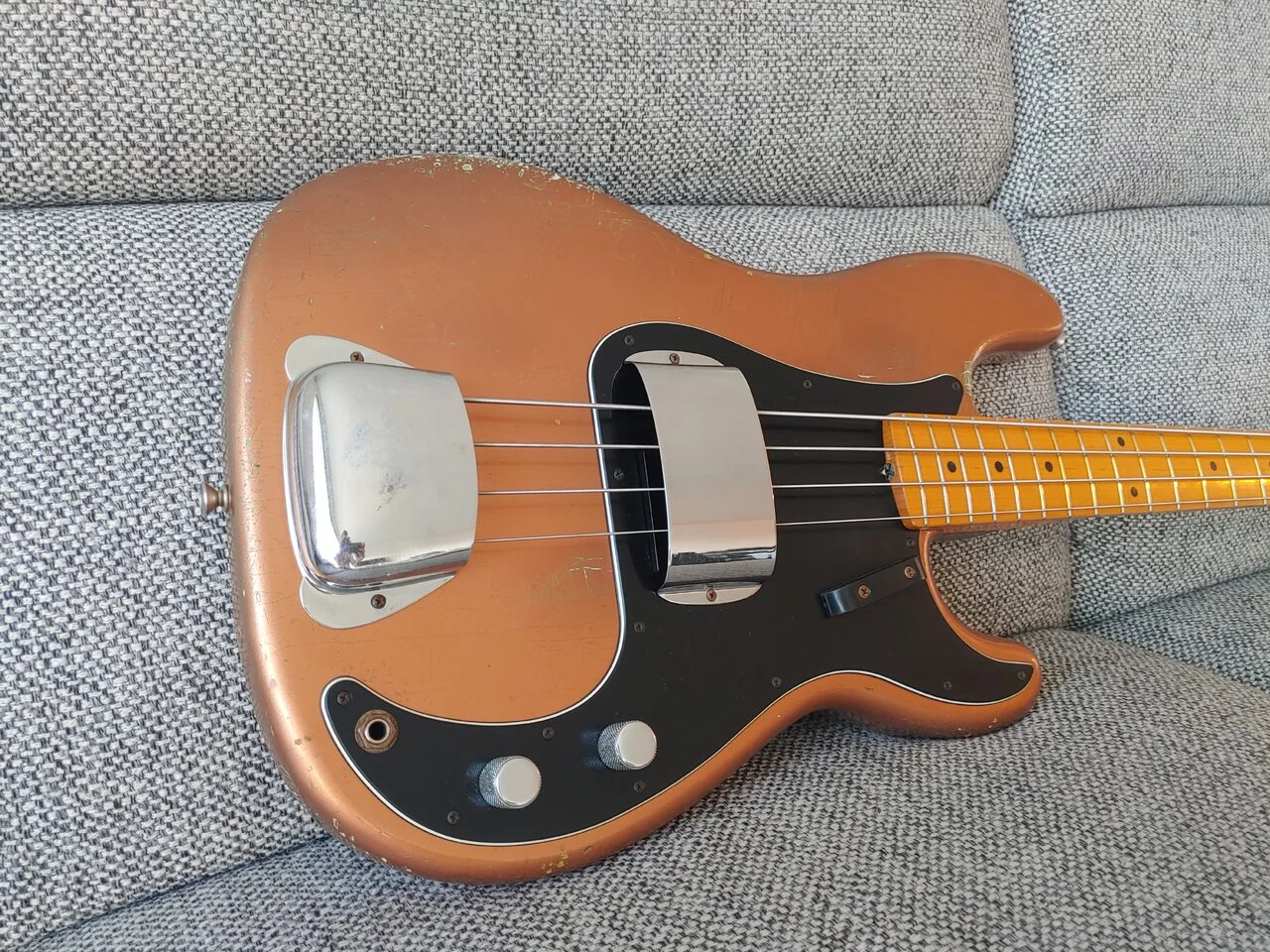Setup achieved and very low action possible (2mm below the 12th fret currently, can go down further and without any buzz). Responsive trussrod and very stable neck. Highly resonant bass, big output and typical 70's sound.