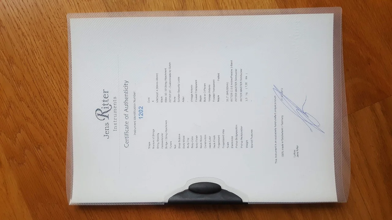 For sale, beautiful knight Cora. The bass is in mint condition. Comes with original Ritter hard case and all the paperwork.