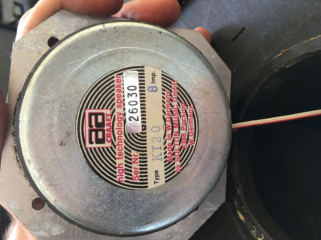 Der Hochtöner ist wohl ein "Craaft KT20" (1" Treiber), zu dem es aber leider nicht mehr viel Infos gibt – in diesem Datenblatt ist er aufgelistet: http://www.atzbach.de/craaft/Craaft_Treiber_Uebersicht.pdf