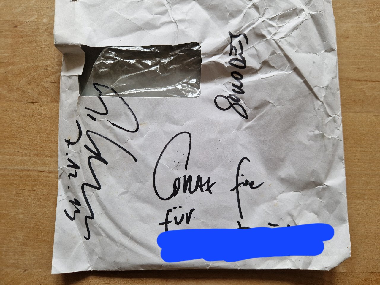 Sonores Corax Kontrabass Saiten handgefertigt von Gerold Genssler (laut Briefumschlag/Verpackung von 2013).