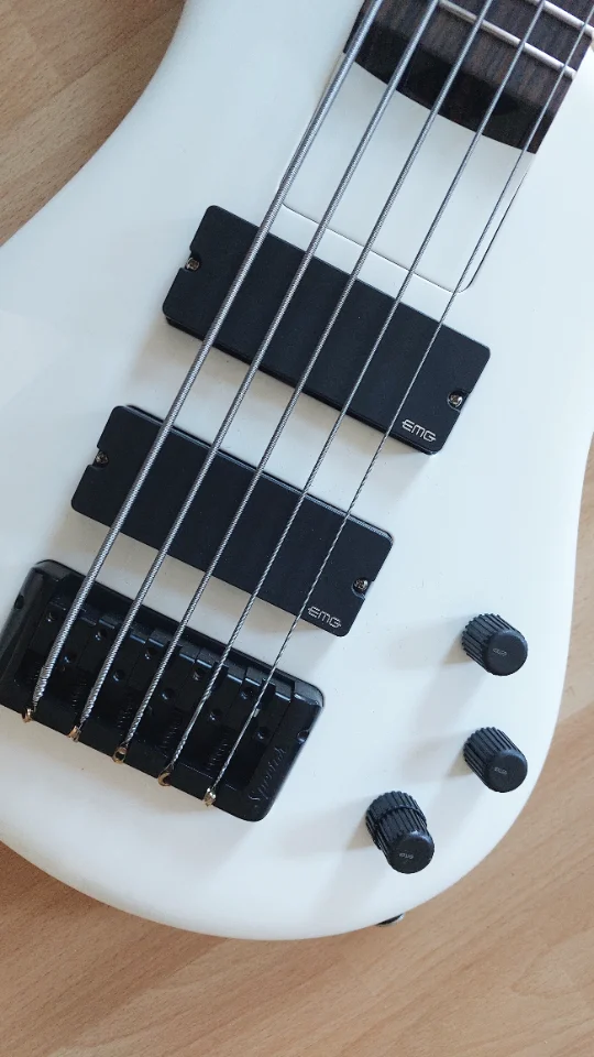 So gut wie ungespielt, nie eine Bühne gesehen. Der Bass ist alles, was ich von ihm erhofft hatte: leicht (<3,8 Kilo), kompakt, klassischer Spector-EMG-Ton, und mit neuen DR-Saiten trotz 32"-Mensur mit einer fetten H-Saite gesegnet (die Werksbesaitung war Grütze). Nur... Ich komme mit dem Halsprofil nicht klar, da ist mir zuviel Fleisch. Bin eigentlich nicht so empfindlich, aber ich hab's lange genug versucht...