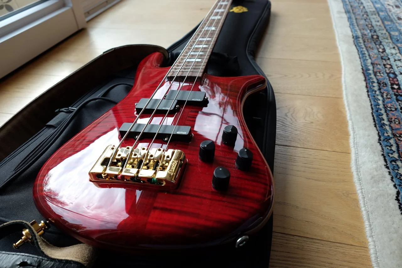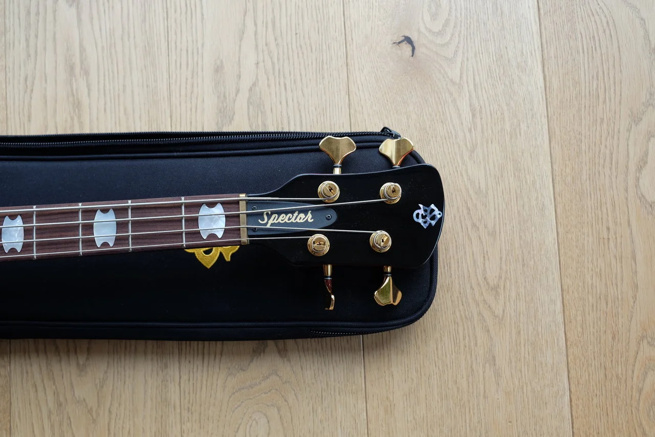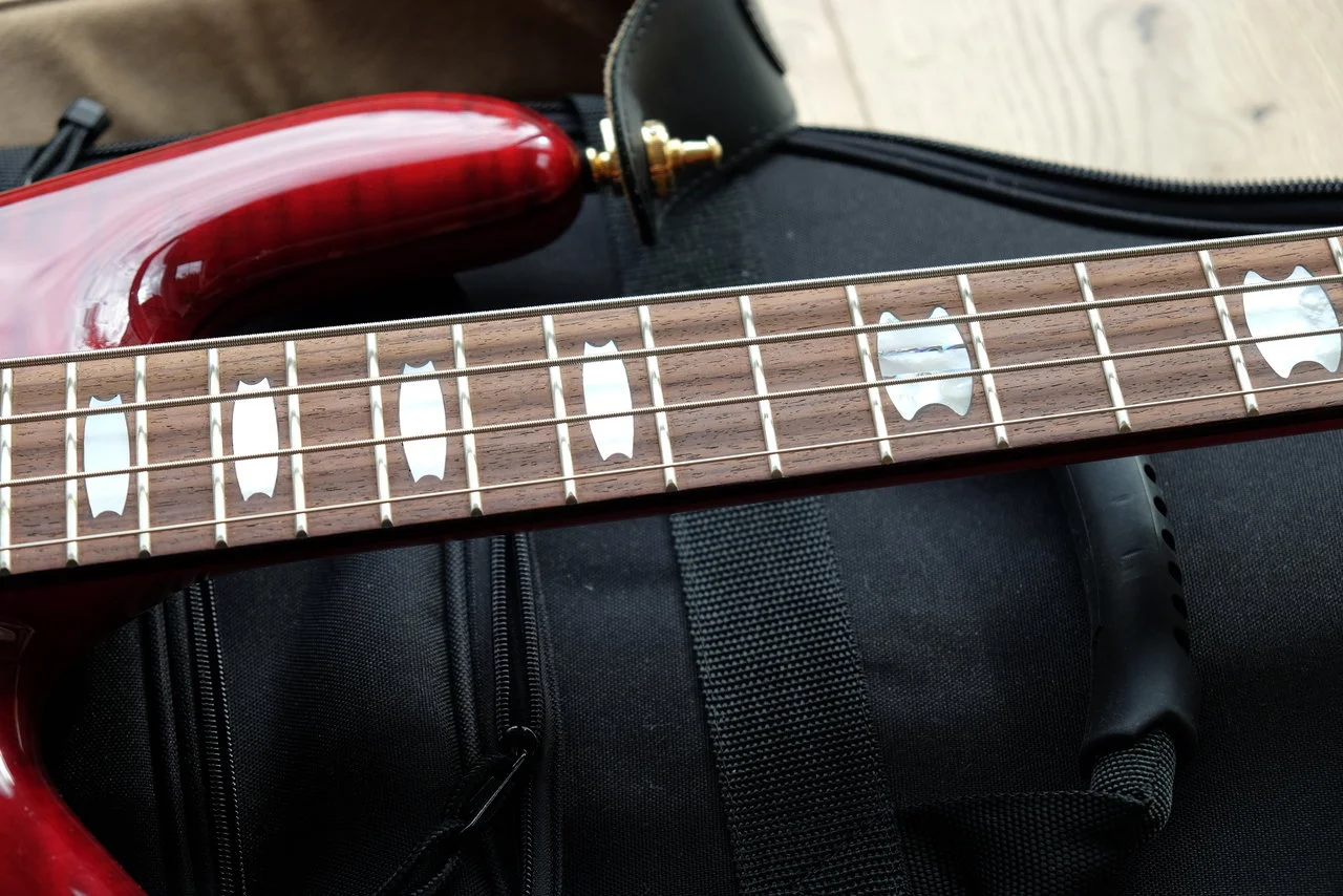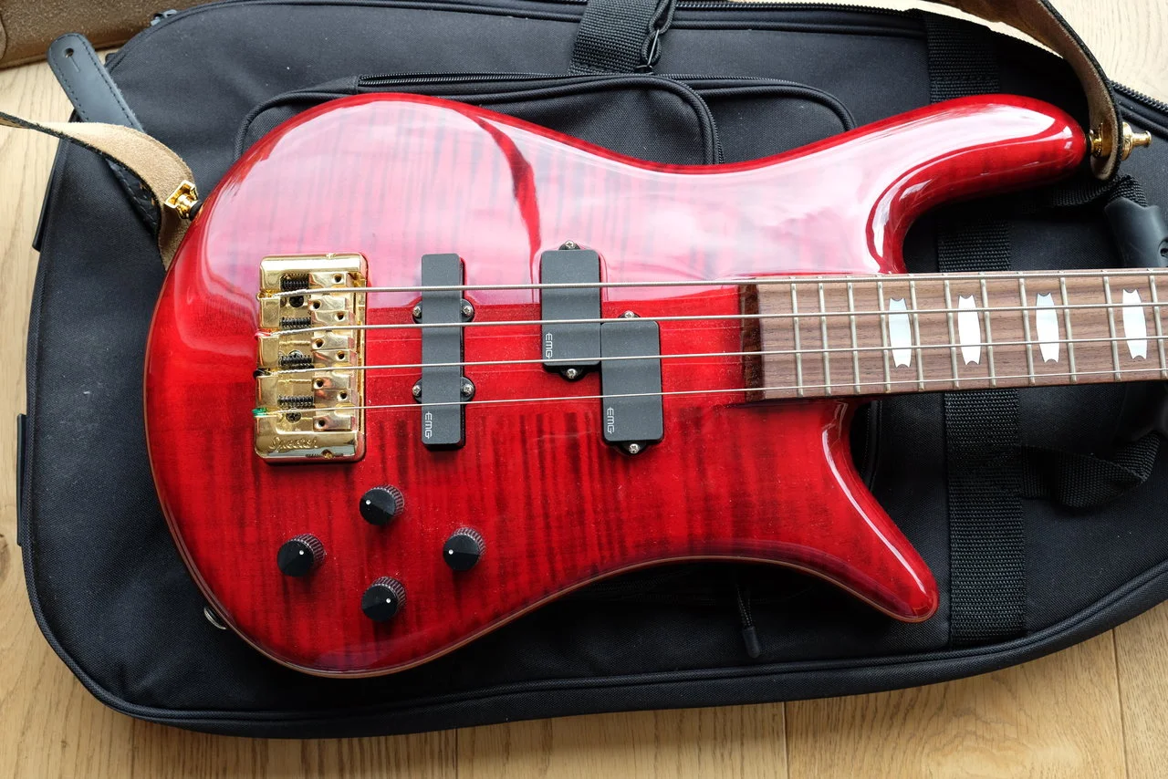 Verkaufe meinen Spector Euro 4 LX in der wunderbaren Farbe Black Cherry. Ich habe den Bass in 09/2019 als B-Ware bei Thomann gekauft.Klanglich ist er super, sehr vielseitig, aber leider komme ich mit der sehr langgestreckten Geometrie nicht gut zurecht. Ich habe die beiden Macken, die er schon bei Lieferung hatte, auf den Bildern festgehalten: einmal ein Riss im Lack ausgehend von einer der Schrauben des Batteriefach-Deckels und zwei kleine Dellen auf der Rückseite des oberen Korpushorns. Beides von Vorne nicht zu sehen. Der Hals und die Bünde sind neuwertig, der Bass wurde nur wenig im Hobbyraum benutzt (Nichtraucher, haustierfrei).