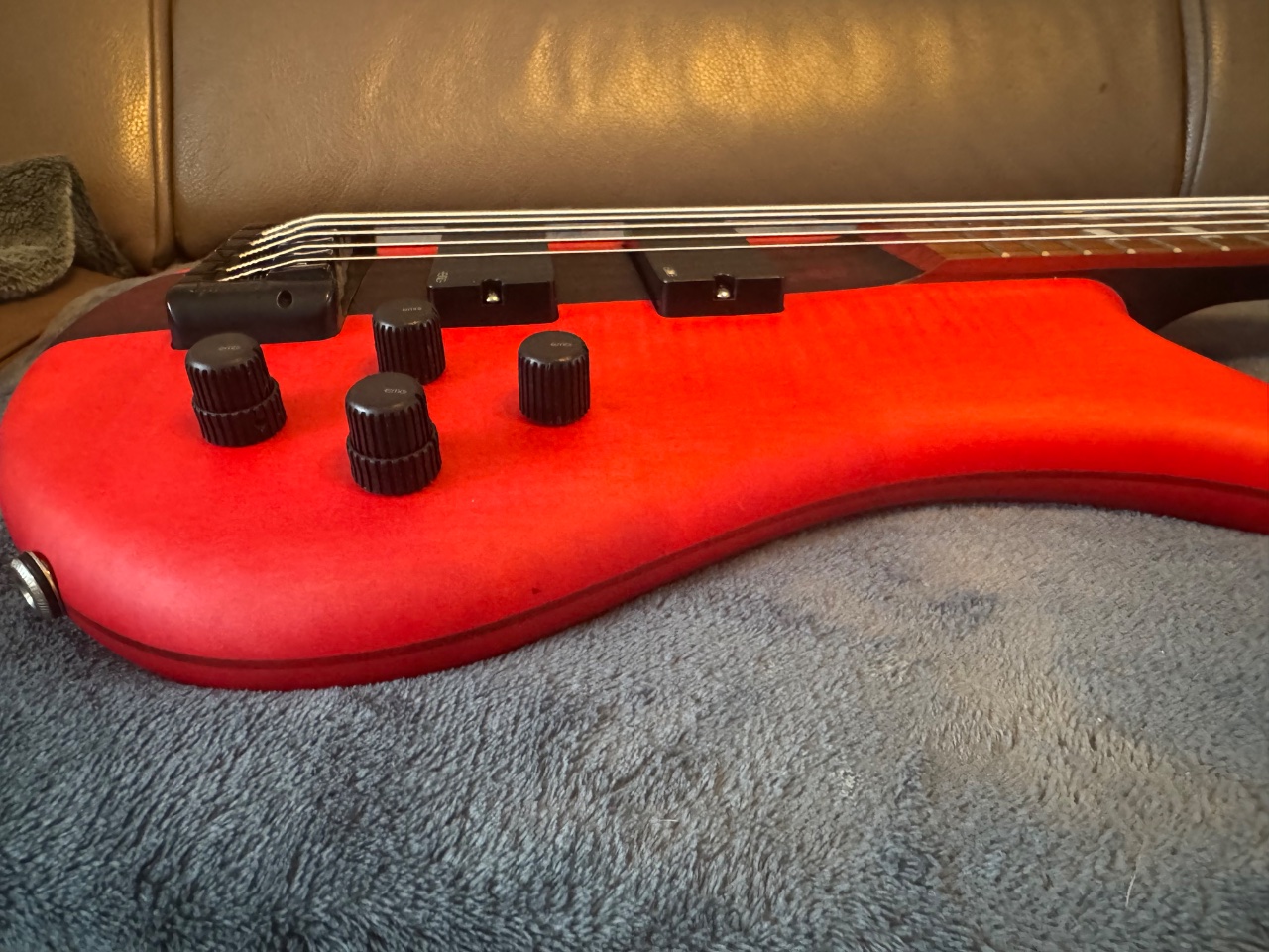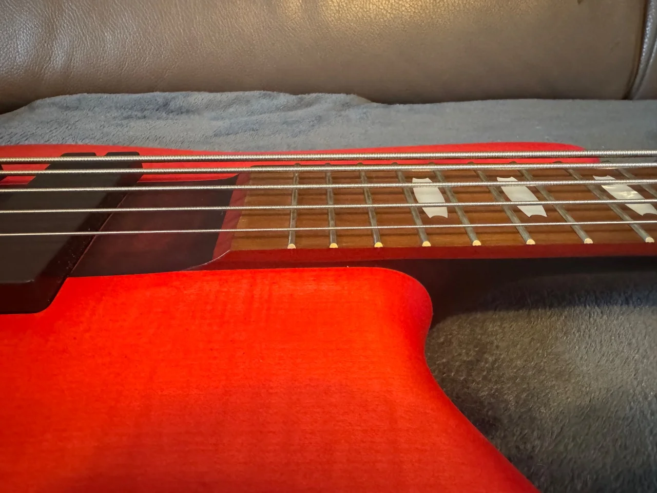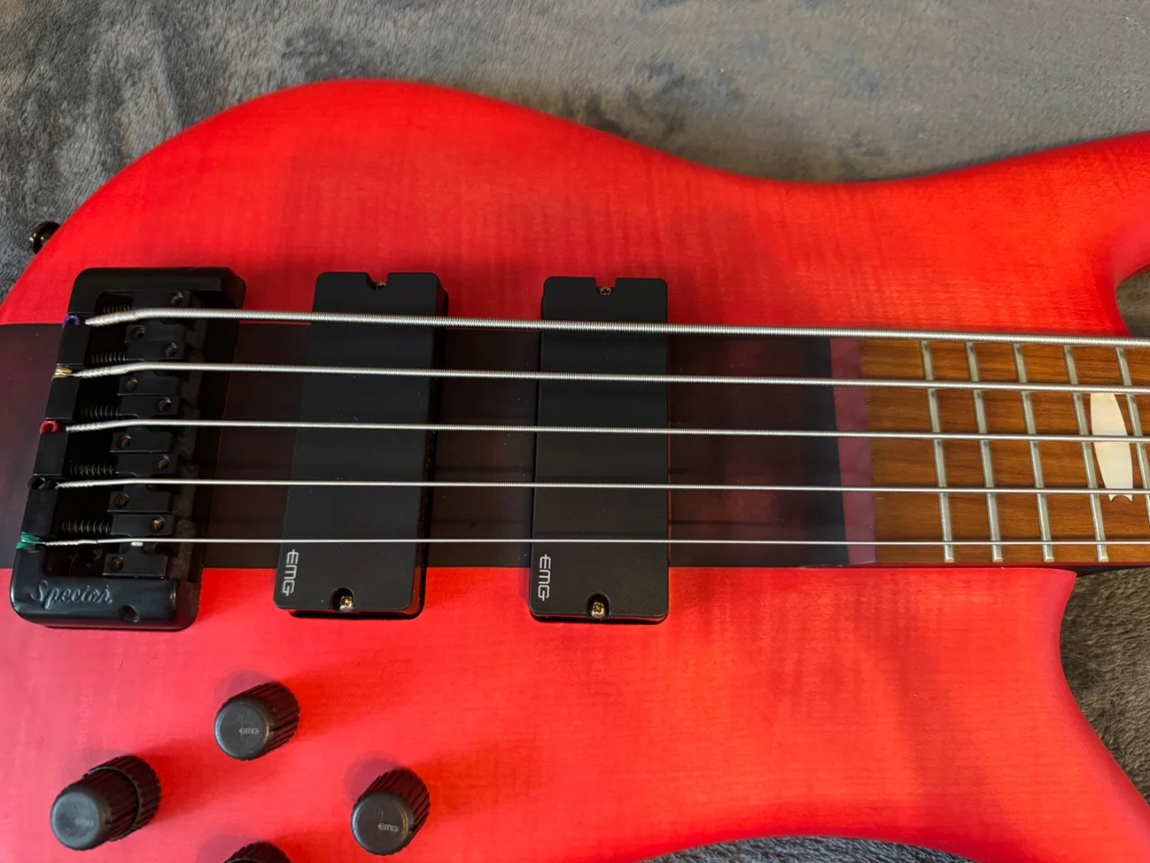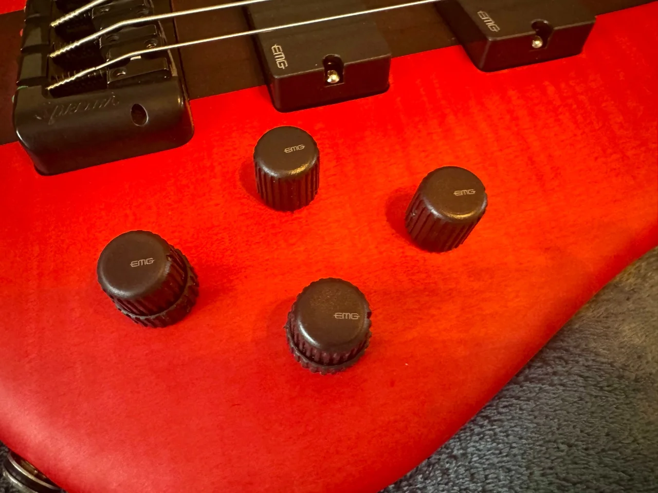 Das Instrument spielt sich fantastisch und klingt durch die EMG-Elektronik richtig druckvoll. Der rote Mattlack ist ein absoluter Blickfang auf der Bühne.