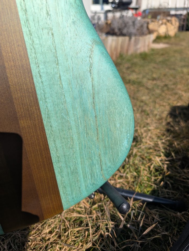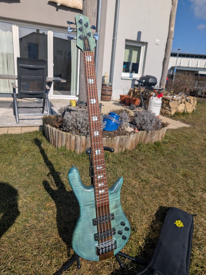 Der Bass ist wenig gespielt und in sehr gutem Zustand. Leichte Spielspuren auf der Rückseite, wie auf den Fotos zu sehen. In der Realität sind sie deutlich unauffälliger.