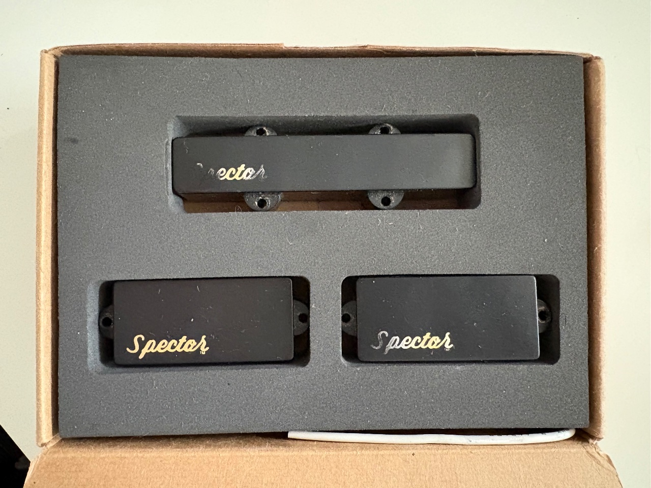 Es wurden aktive EMG P/J Pickups eingebaut, die originalen Spector Pickups gebe ich aber der Vollständigkeit halber dazu.