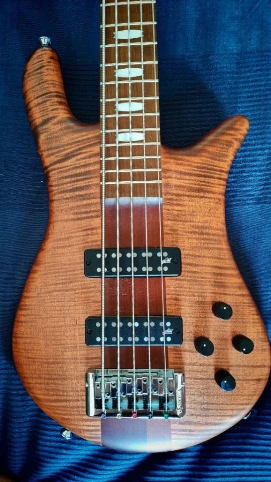 Der Bass hat einen Plek Service bekommen, so dass die Saitenlage wirklich hervorragend ist.