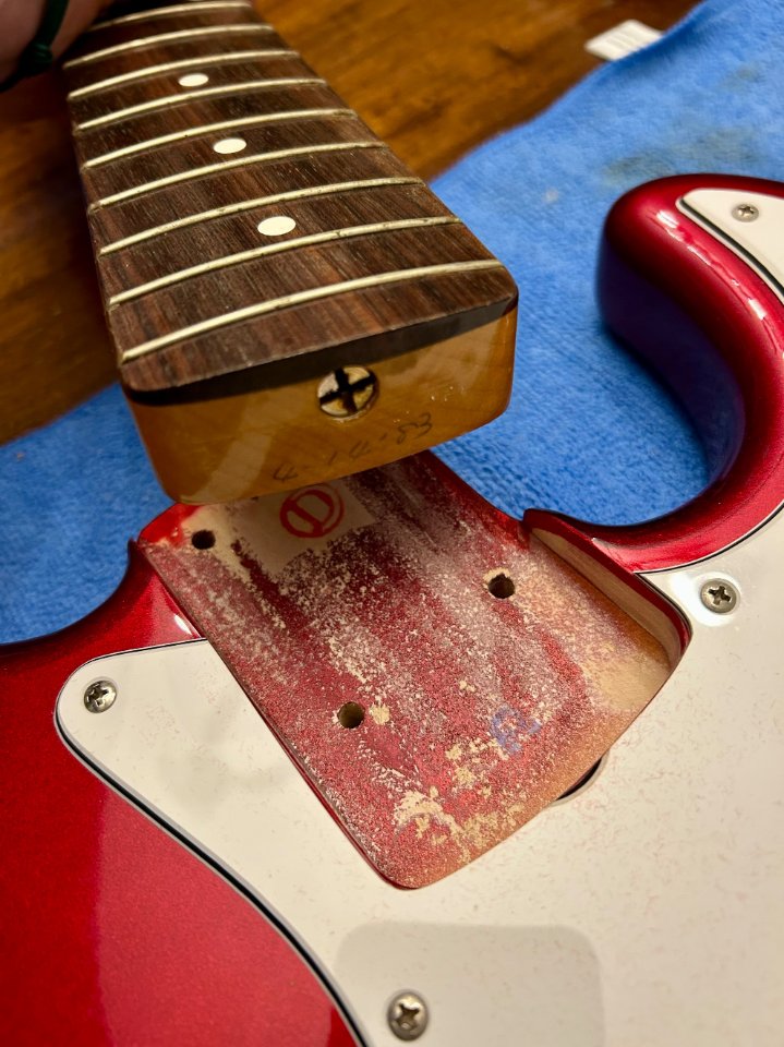 Truly excellent condition given its age. Perfect neck, no fret wear, and no major flaws to report, except for a slight dent on the top edge.