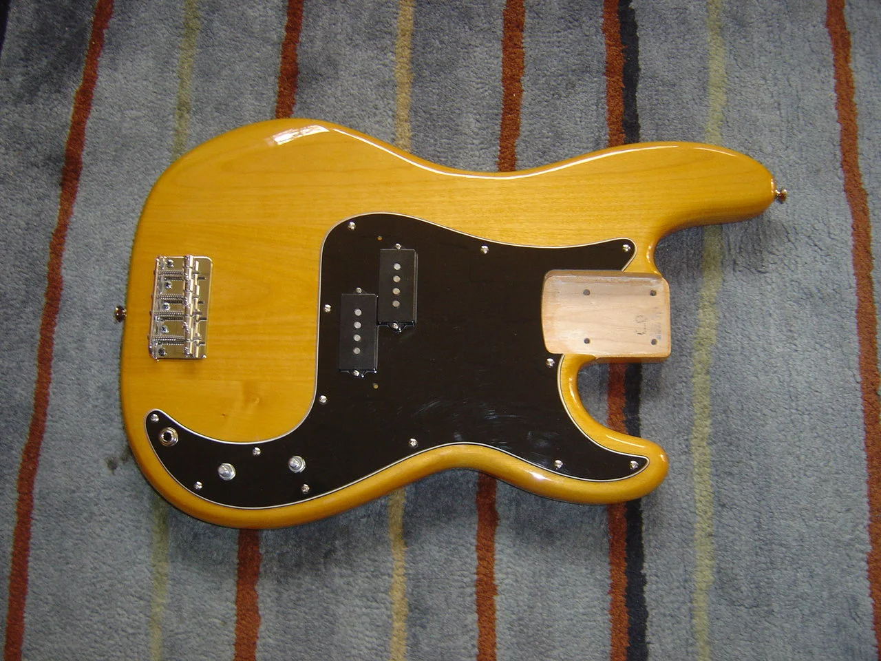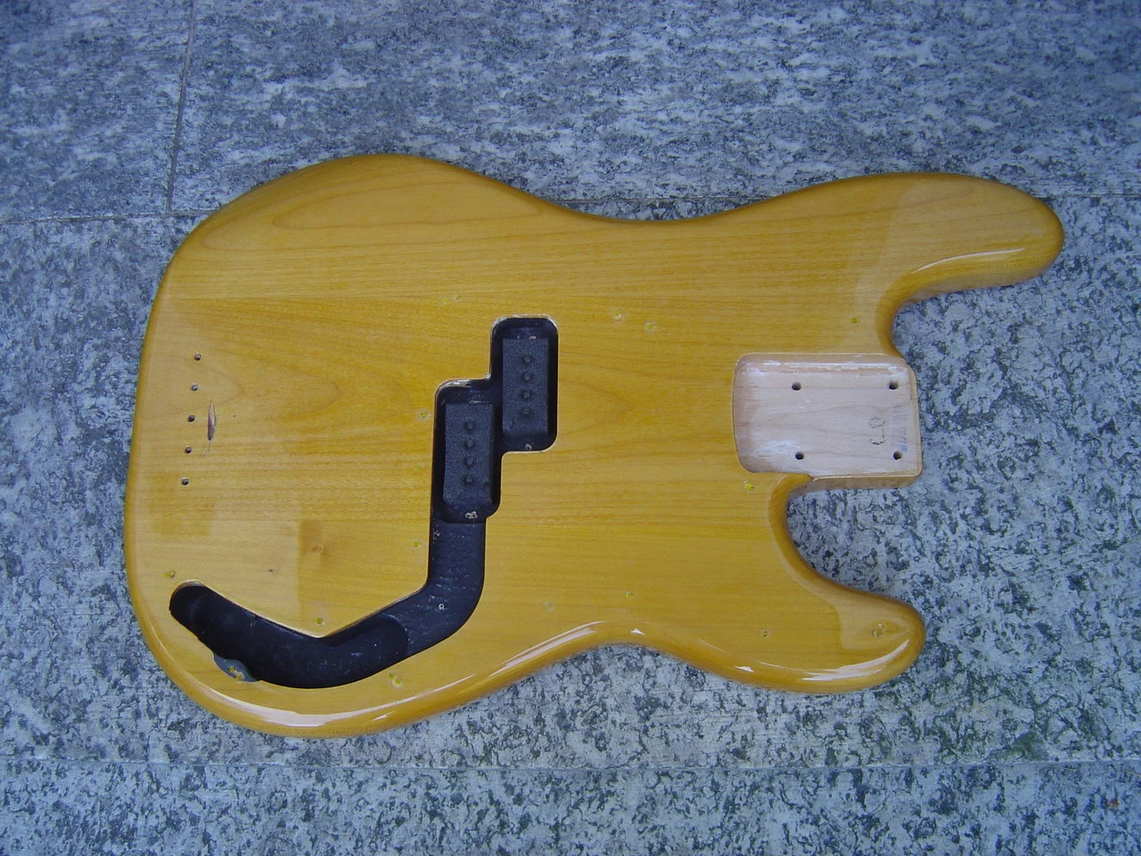 Der Body ist übrig und stammt von einem Squier Vintage Modified Preci und ist für einen Maple Body ein eher selten leichtes Exemplar.